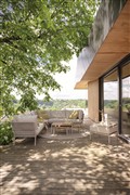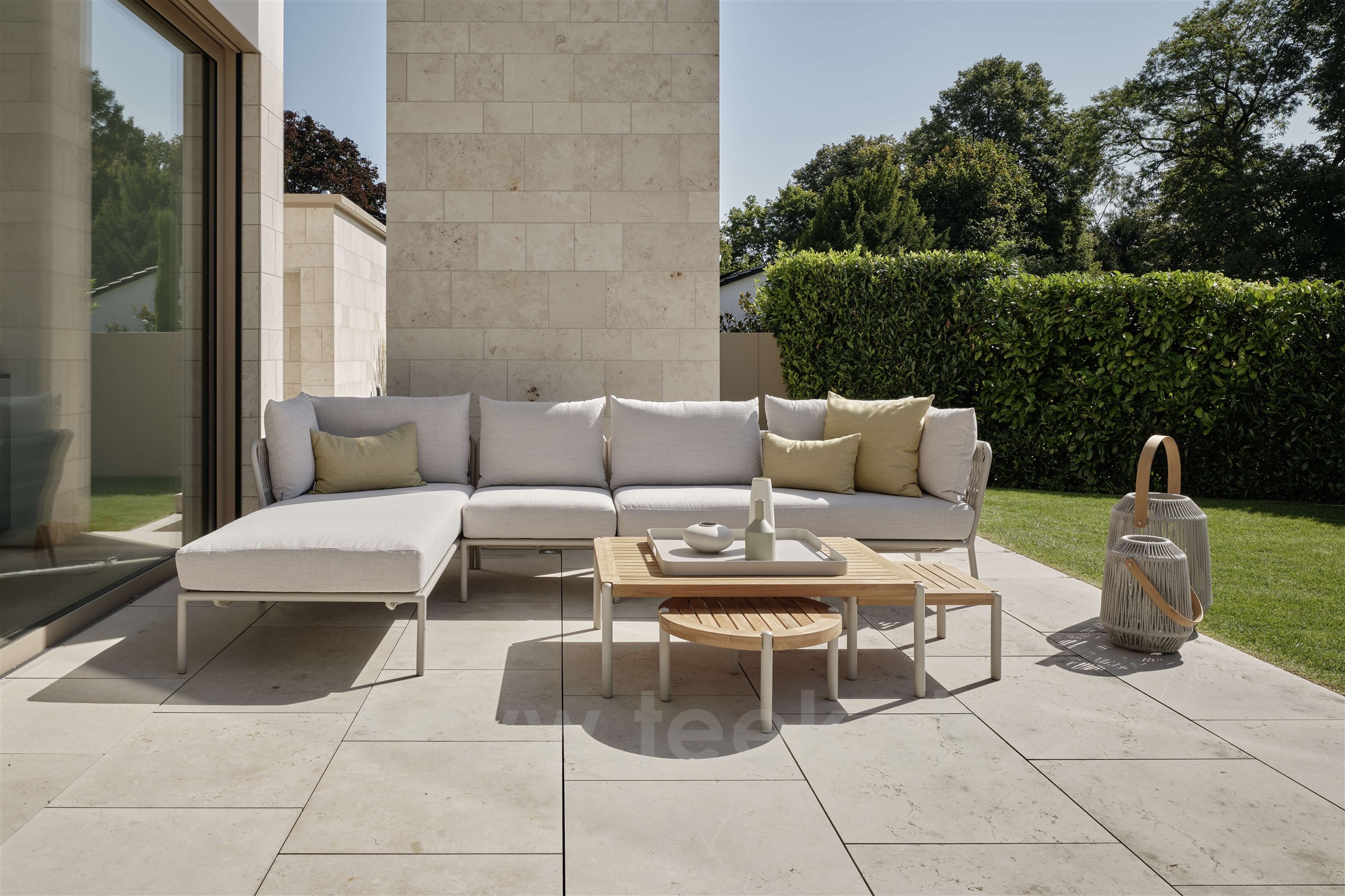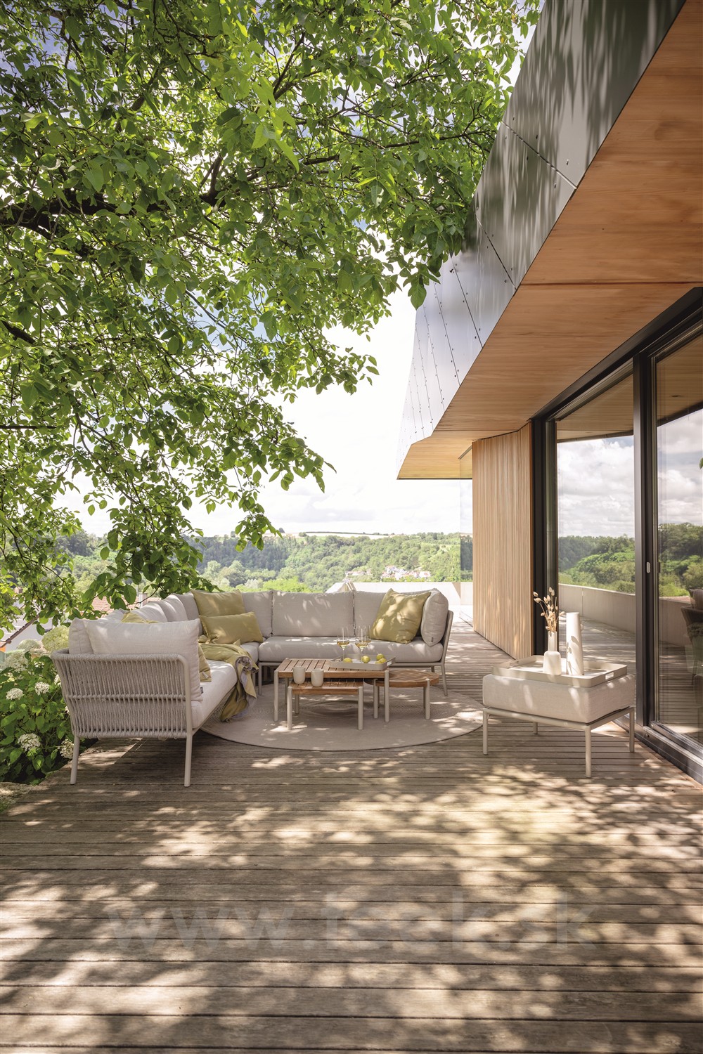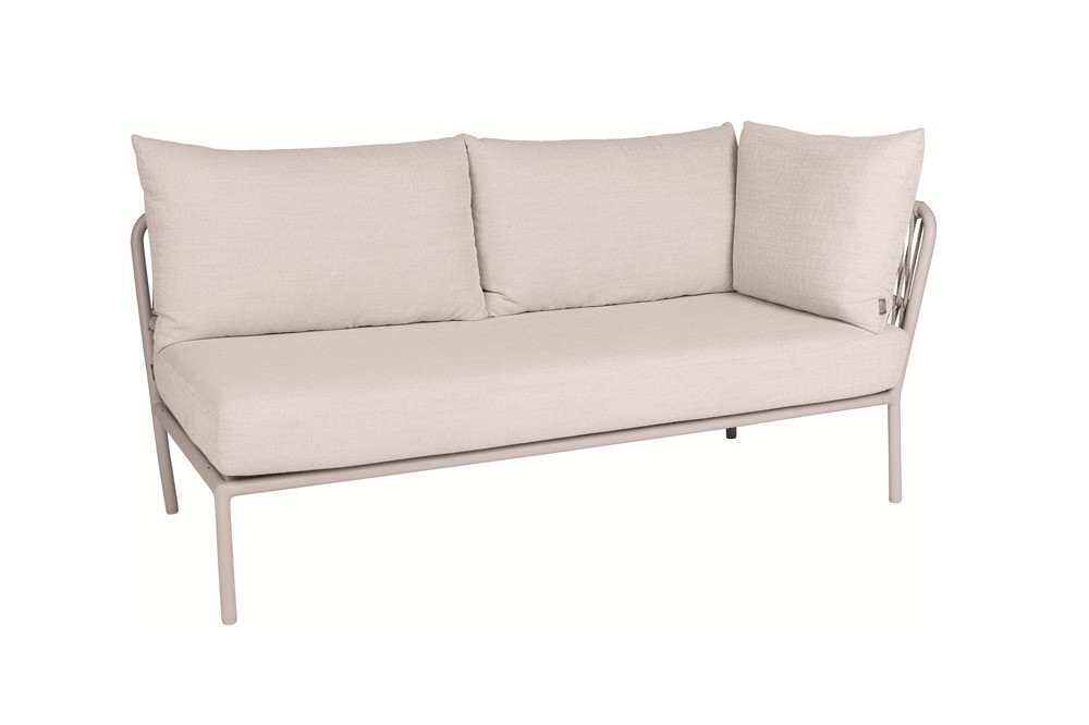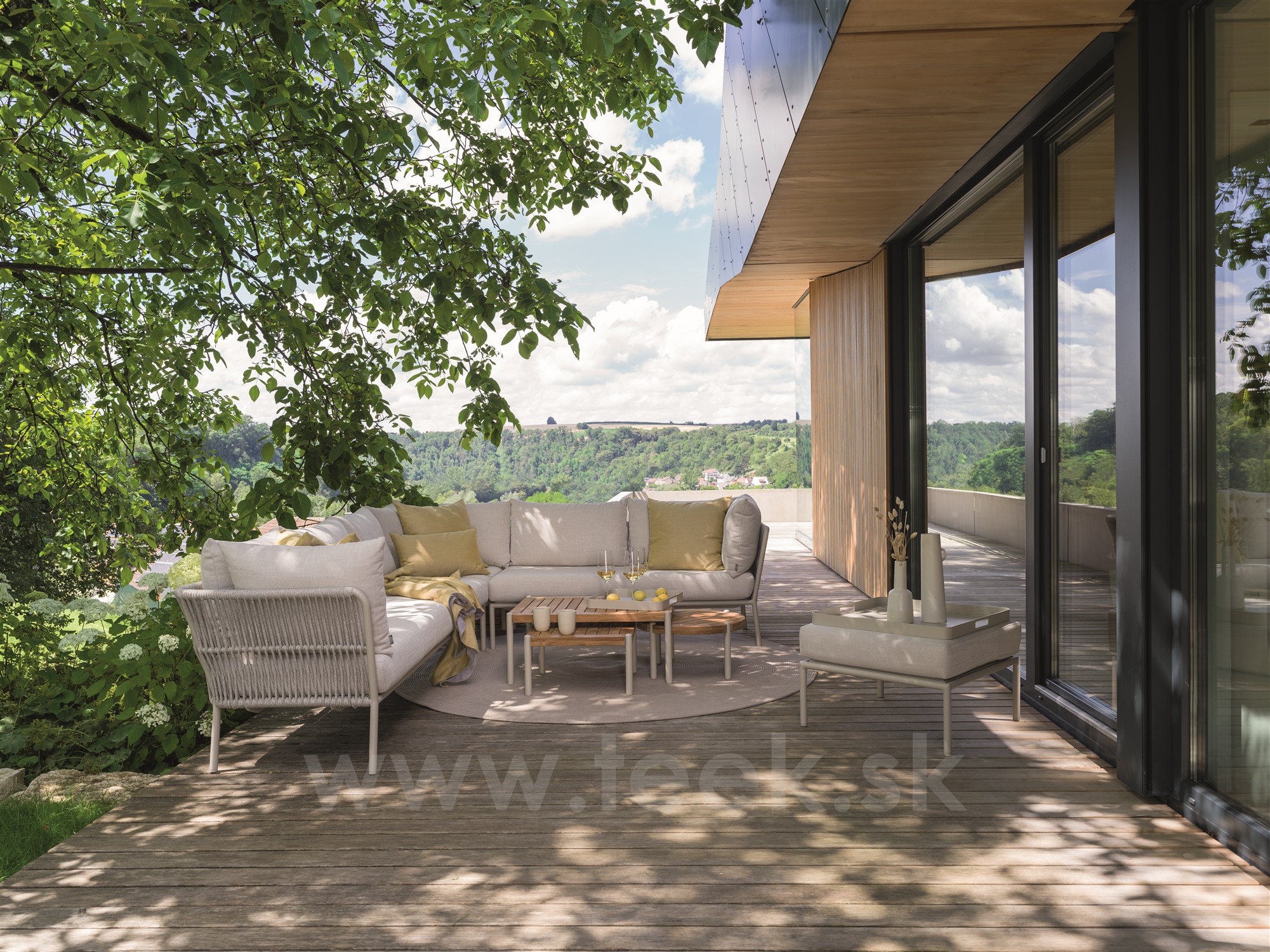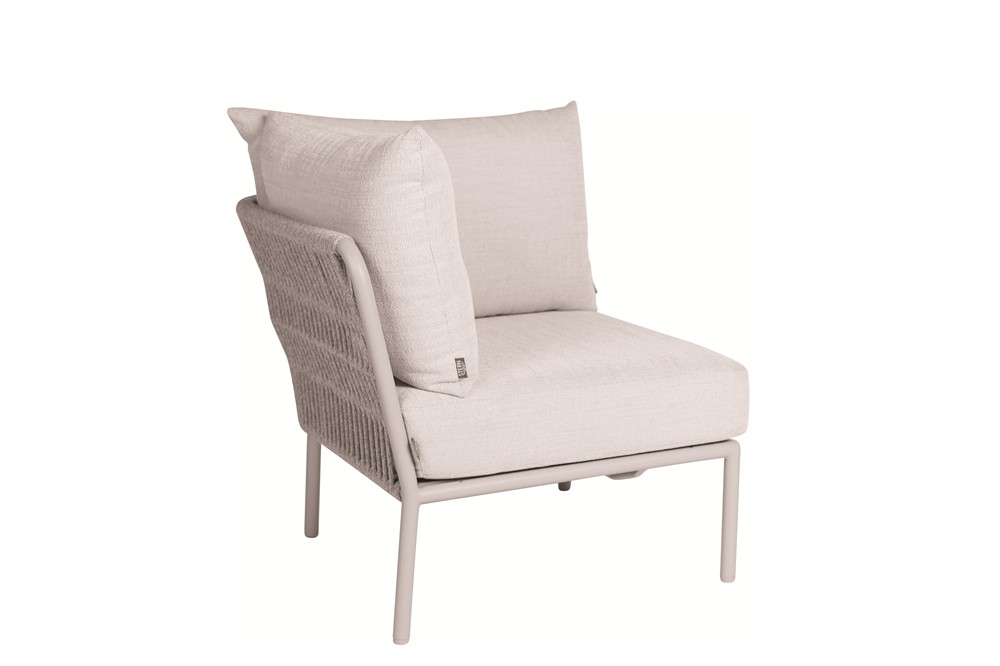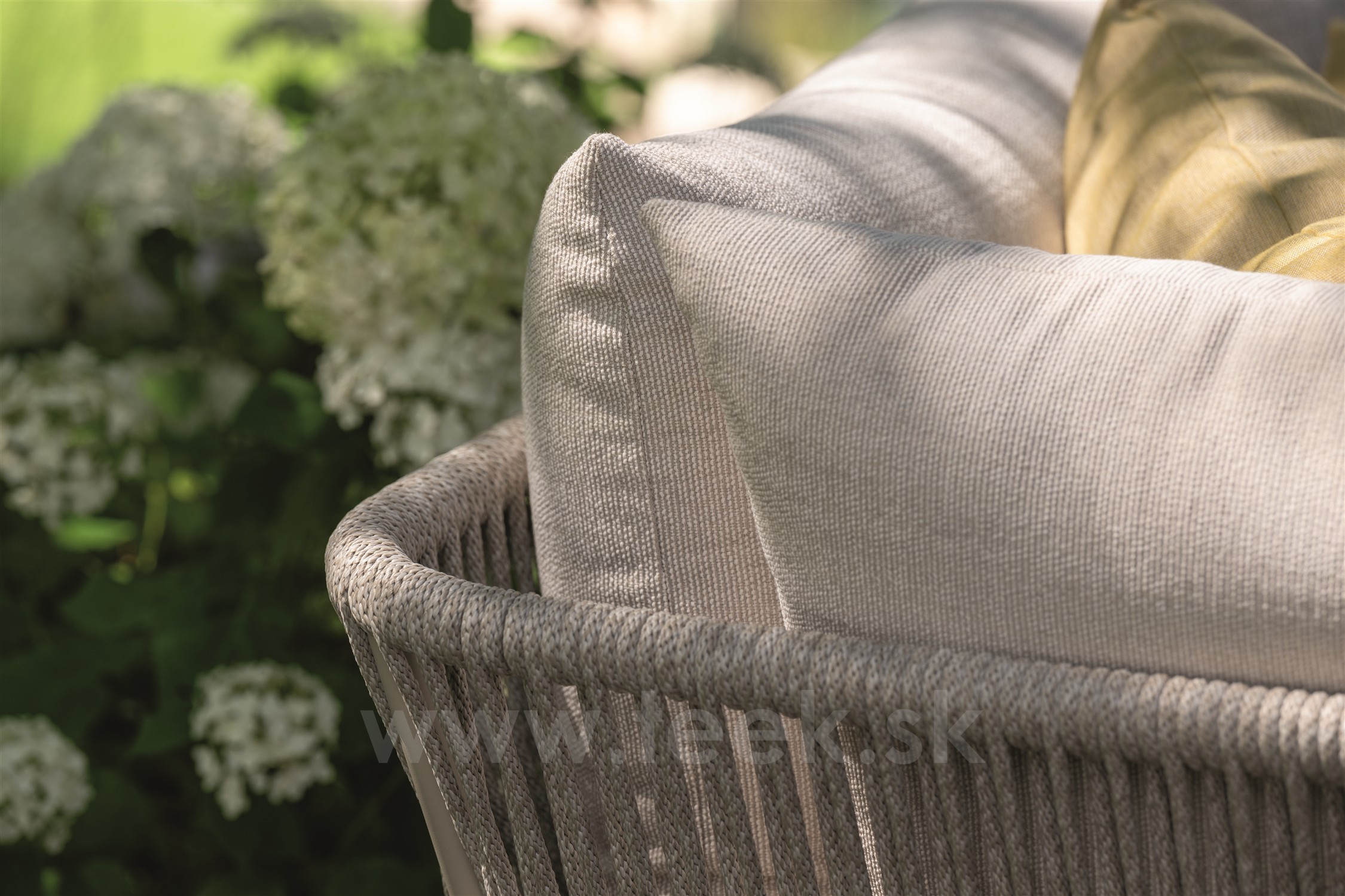 Elegantní modulární venkovní sedací sestava s lankovým výpletem a pohodlnými sedáky.