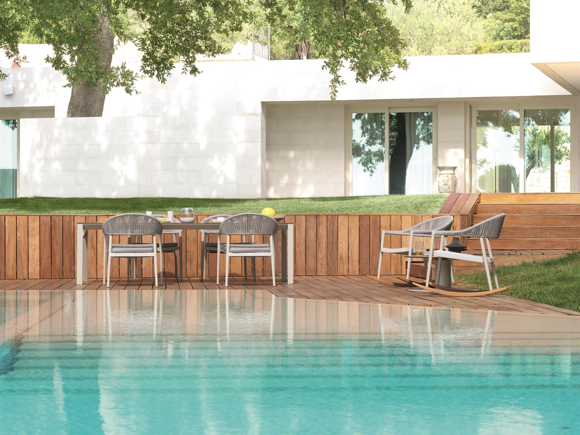 Kolekcia záhradných kresiel a pohovky Clever značky Varaschin. Rám kresiel je z lakovaného hliníka, výplet z textilénu alebo vonkajšieho lanka. Súčasťou je nízke kreslo, hojdacie kreslo a pohovka.