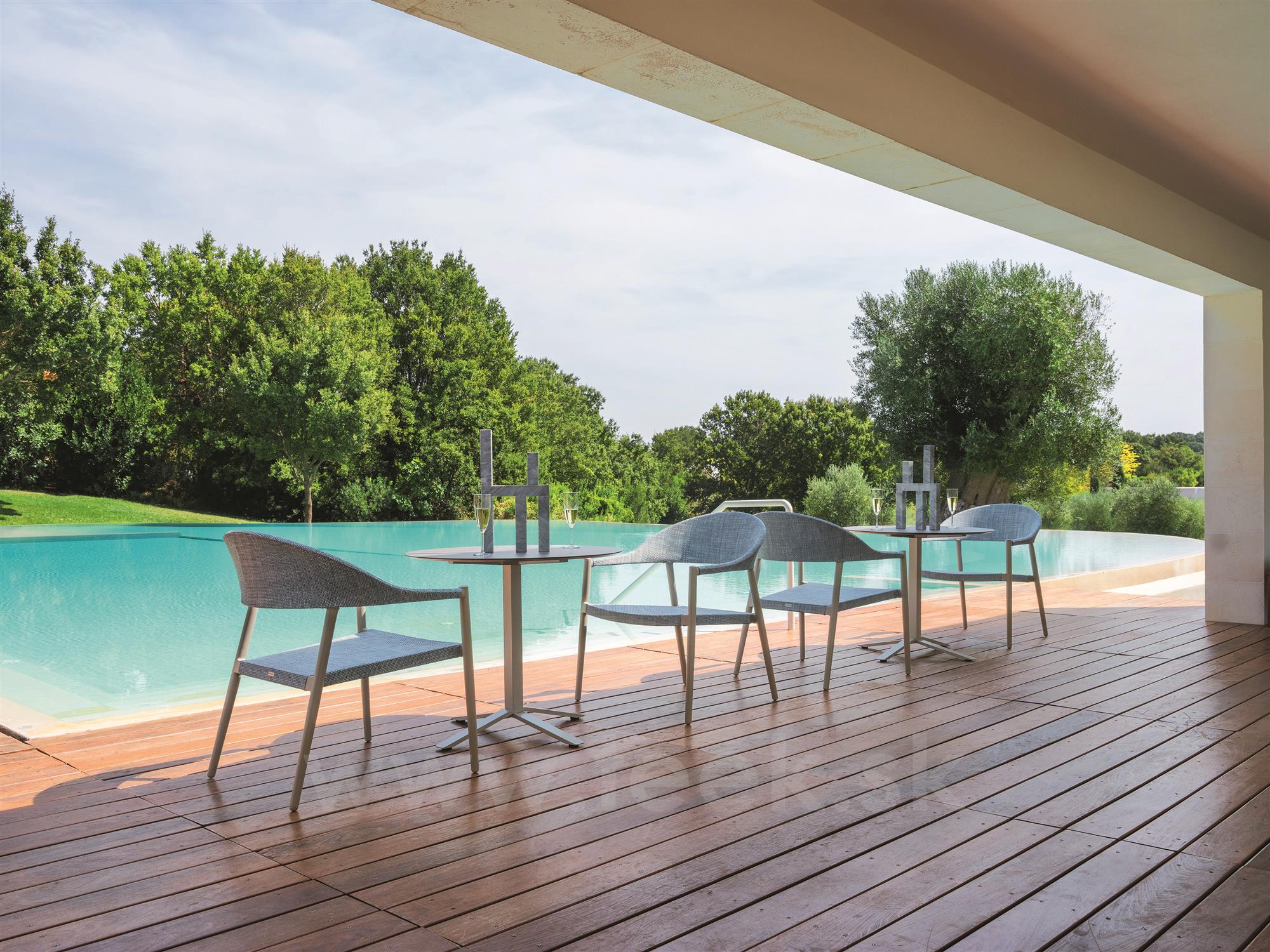 Záhradné relaxačné kreslá je možné kombinovať s jedálenskými kreslami z rovnakej kolekcie Clever.