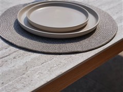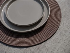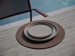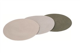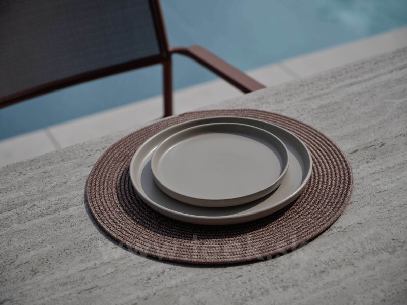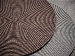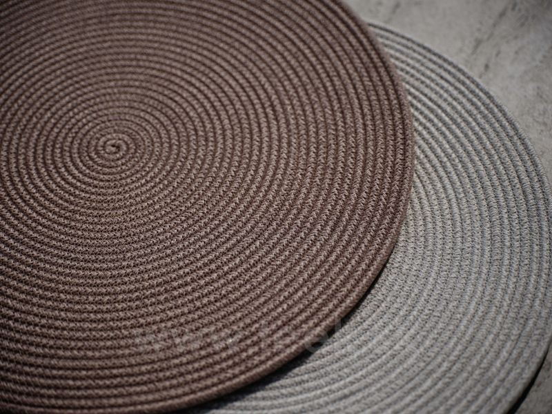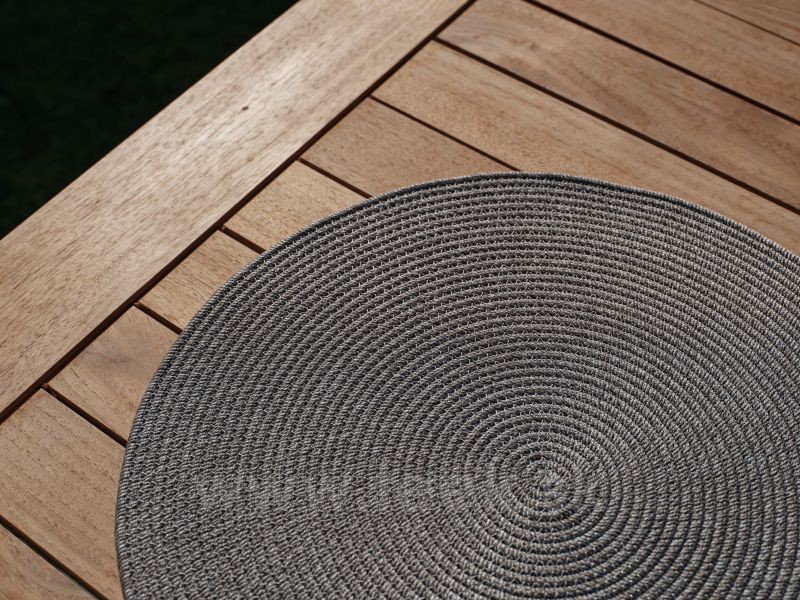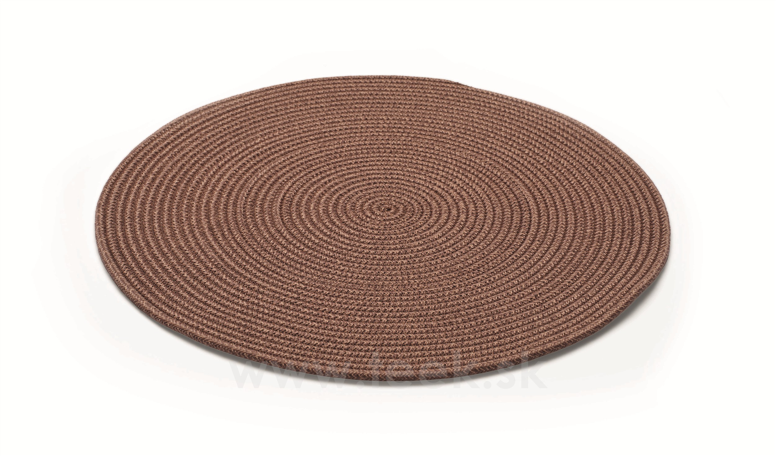 Kvalitní luxusně vypadající venkovní prostírání, které můžete použít i v interieru. Snese zátěž a snado se čistí. Kulaté průměr 40 cm, výška ca 5 mm. Materiál: polypropylen, různé barvy.