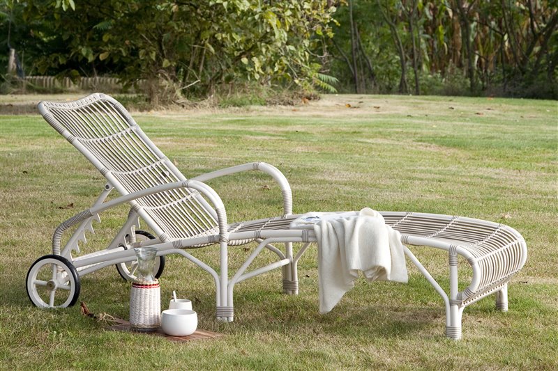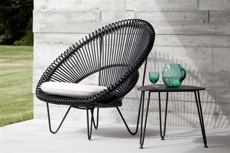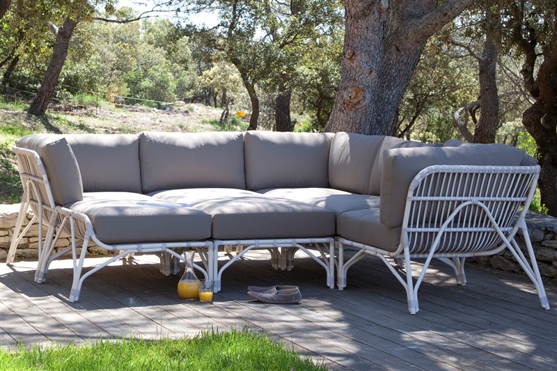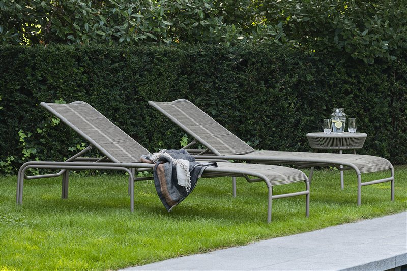 Dizajnová sedacia zostava z lakovaného hliníka a lankového výpletu.