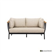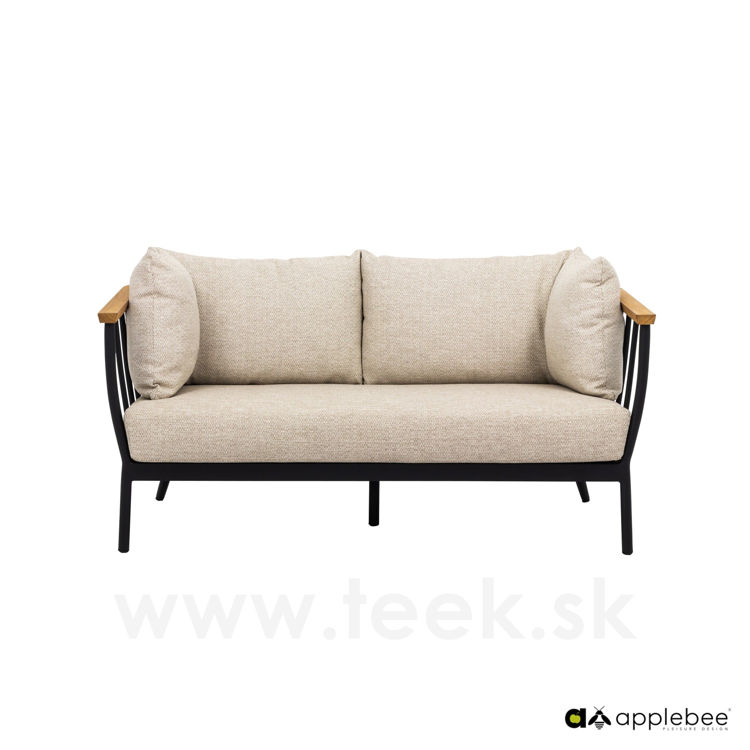 2-místná pohovka Condor, Apple Bee, 150x83x66 cm, rám hliník Black, područky teak, sedáky venkovní látka Olefin Natural Oak