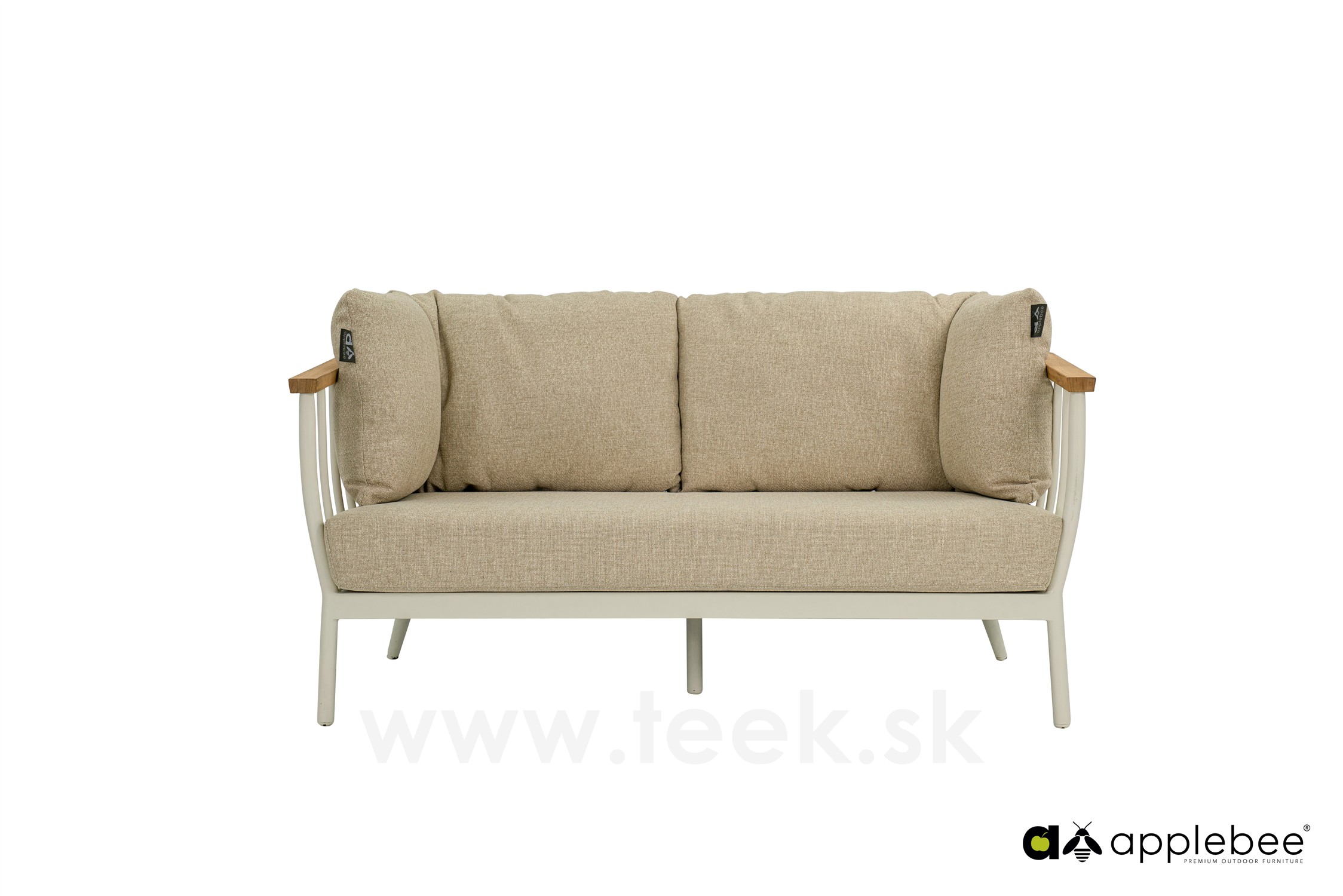 2-místná pohovka Condor, Apple Bee, 150x83x66 cm, rám hliník Oyster, područky teak, sedáky venkovní látka Olefin Cotton Flower