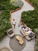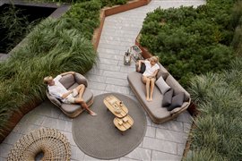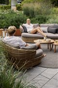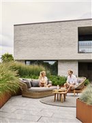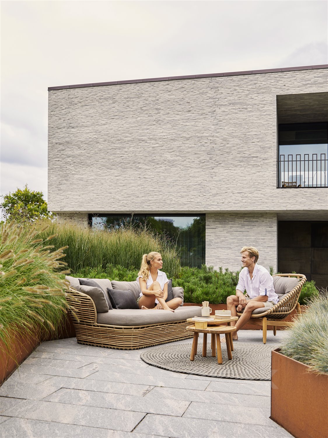 The frame is made of lacquered steel. The weave is synthetic rattan (Cane-line Weave). Dimensions: 201x100x70 cm, seat height 40 cm, armrest height 61 cm.