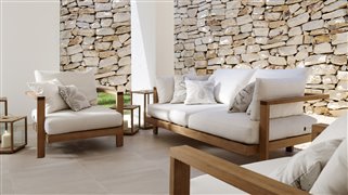 Venkovní pohovka/sofa Pure značky Tribu z teakového masivu.