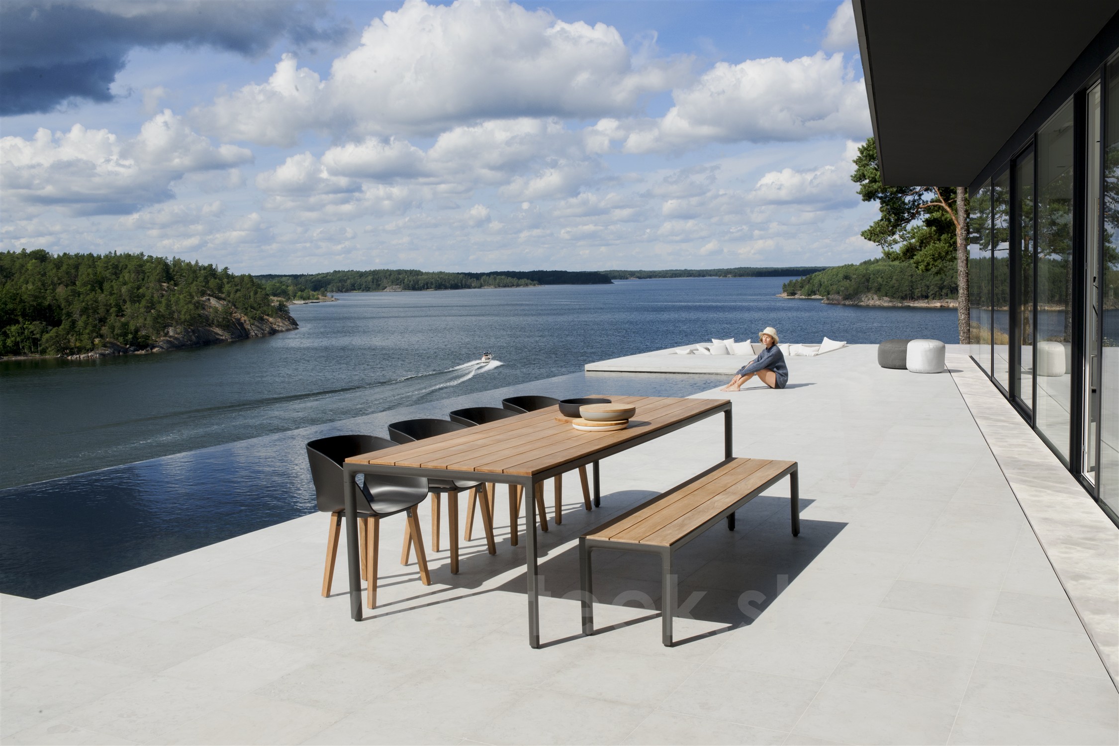 Jídelní stůl Illum, Tribu, obdélníkový 212x71 cm, hliník, teak