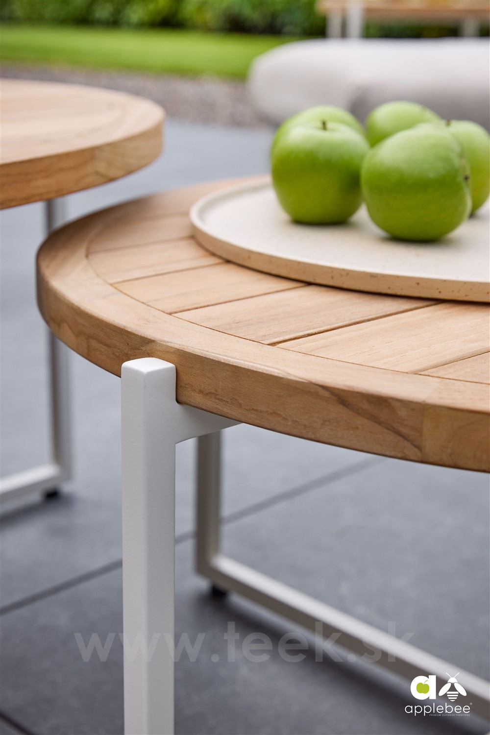 Konferenční stolek Condor, Apple Bee, kulatý 94x44 cm, rám hliník Oyster, deska teak