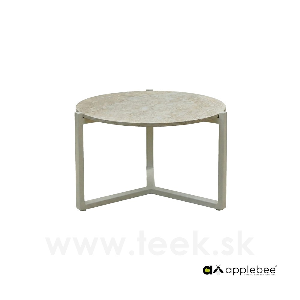 Konferenčný stolík Monaco, Apple Bee, okrúhly 60x41 cm, rám hliník Oyster (krémová), doska keramický kompozit dekor Cream