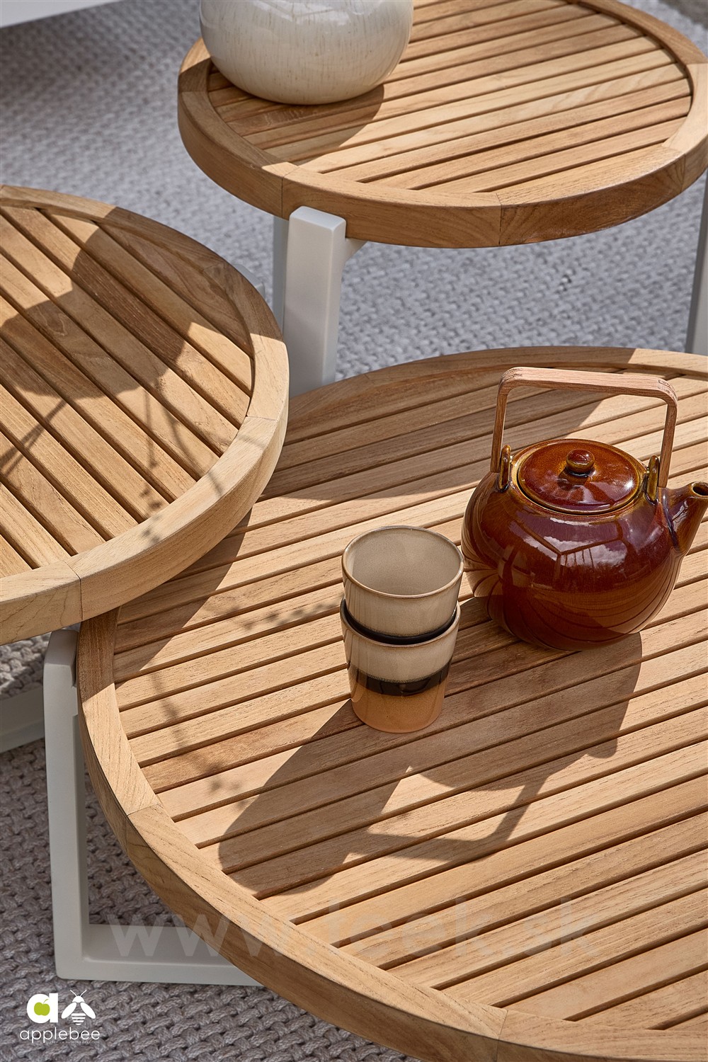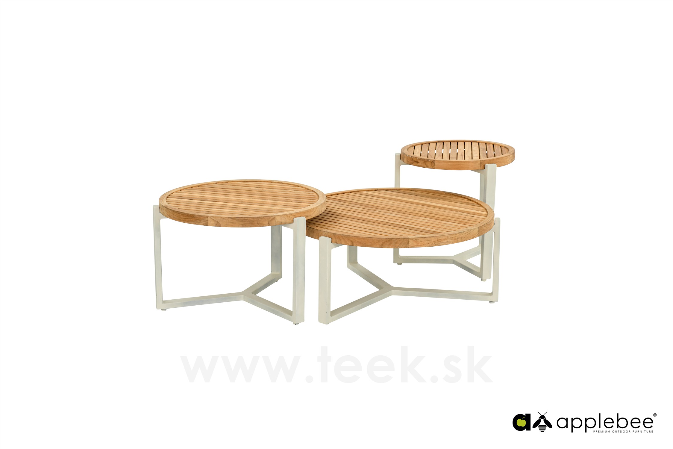 Konferenční stolek Monaco, Apple Bee, kulatý 75x34 cm, rám hliník Oyster (krémová), deska teak