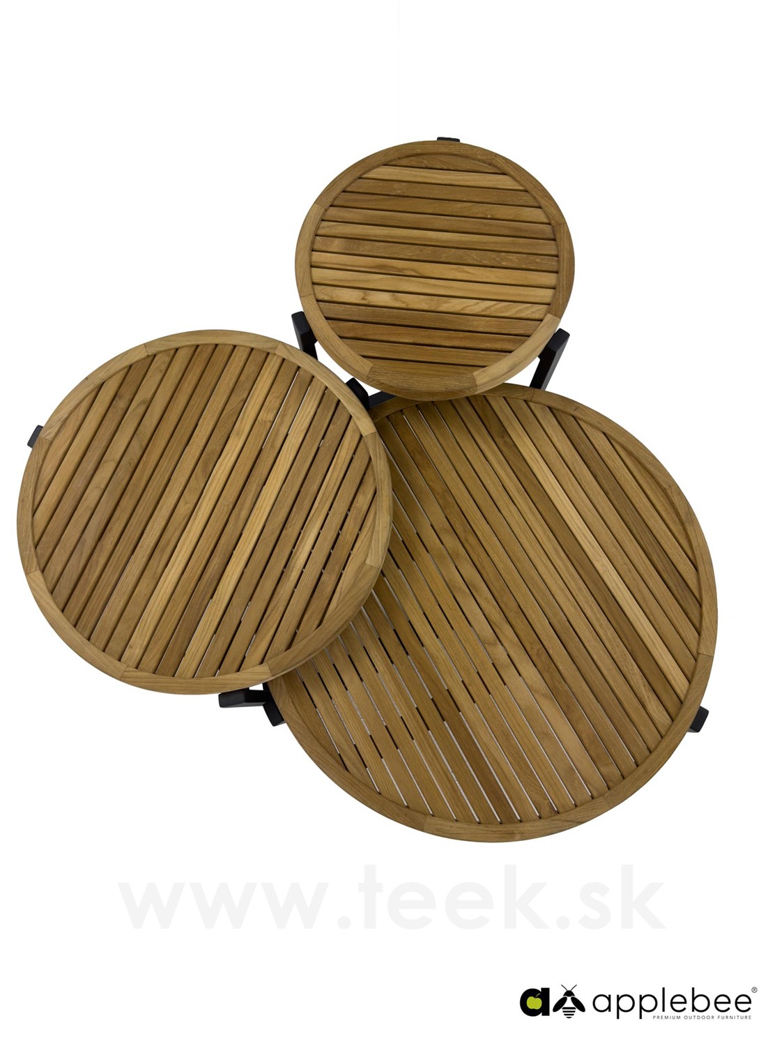Konferenční stolek Monaco, Apple Bee, kulatý 75x34 cm, rám hliník Black (černá), deska teak