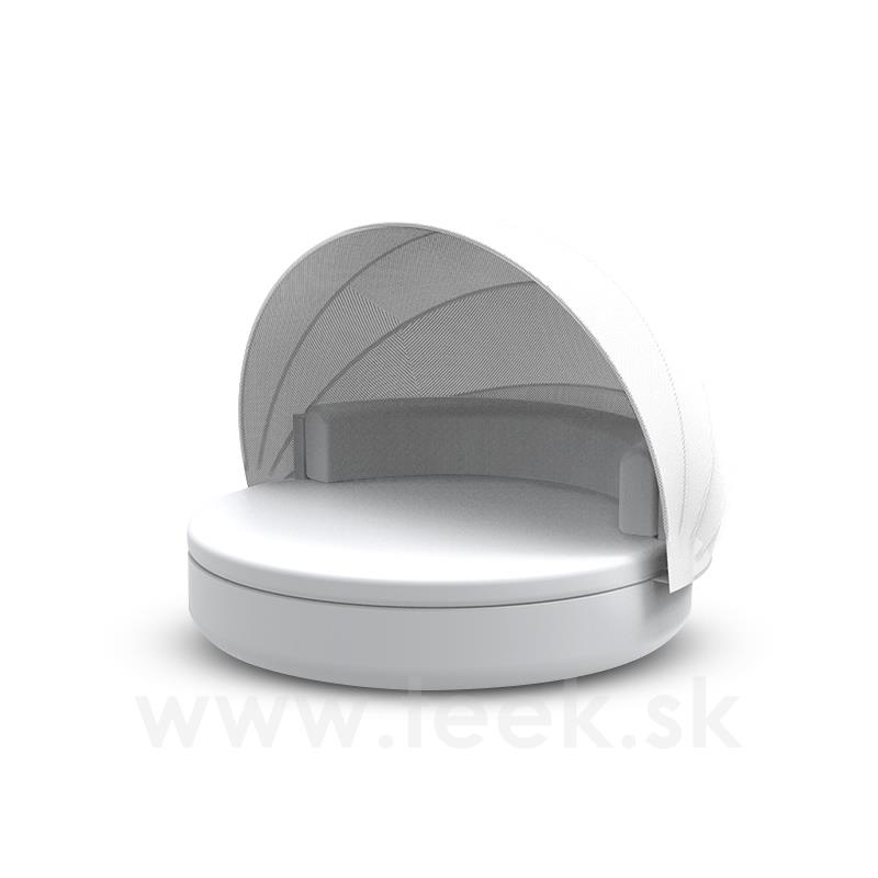 Denná posteľ so sklápacou strieškou a pevným operadlom ULM, Vondom, okrúhla 194x147 cm, matný polyetylén, matný vonkajší textilný matrac skupiny 1A a 1B, farba podľa vzorkovníka