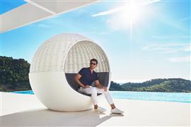 Denná posteľ Ulm Moon, Vondom, 218x202x205 cm, matný polyetylén, strecha s káblom, matrac s vonkajšou tkaninou skupiny 1A a 1B, farba podľa zoznamu farieb