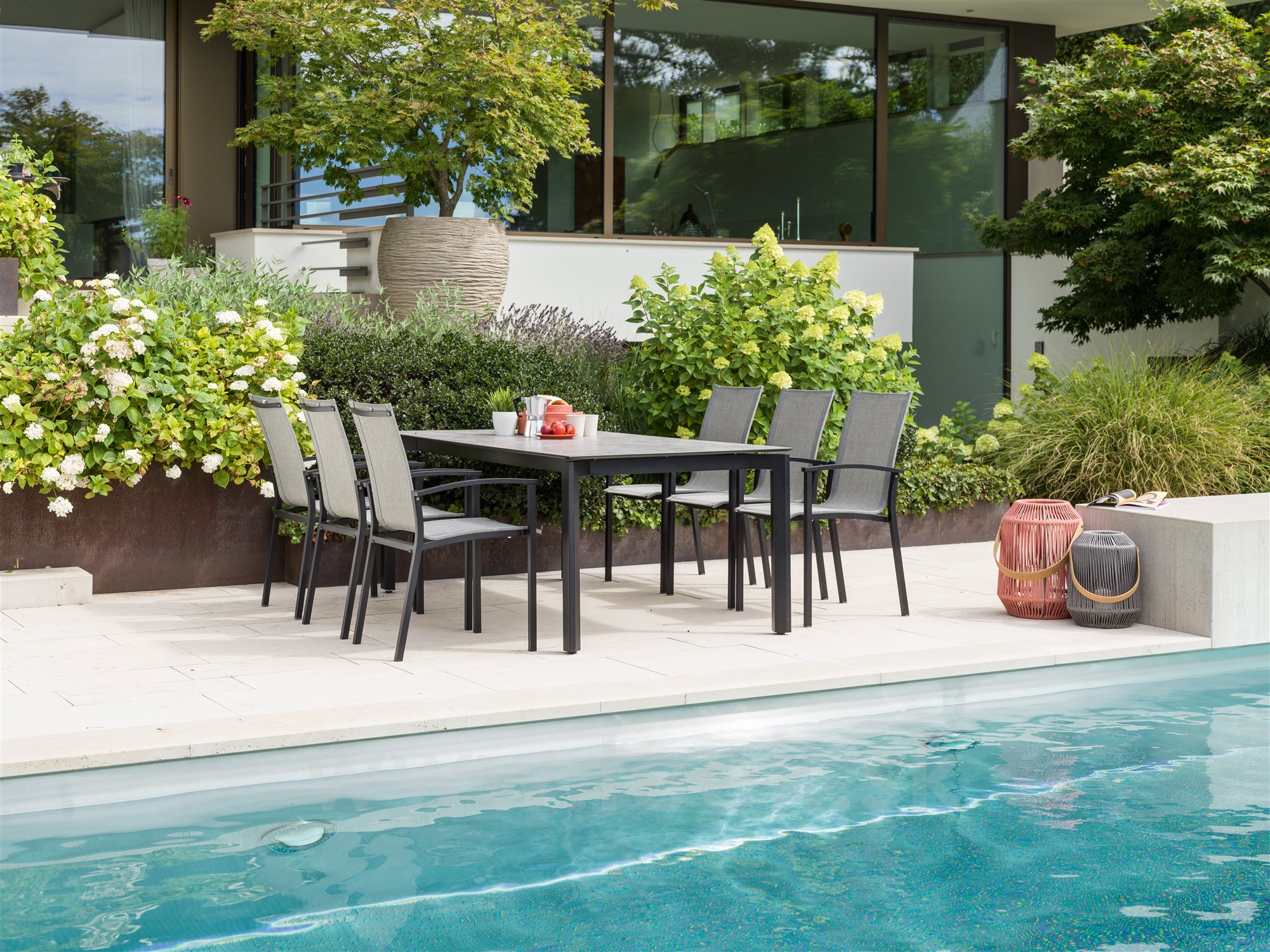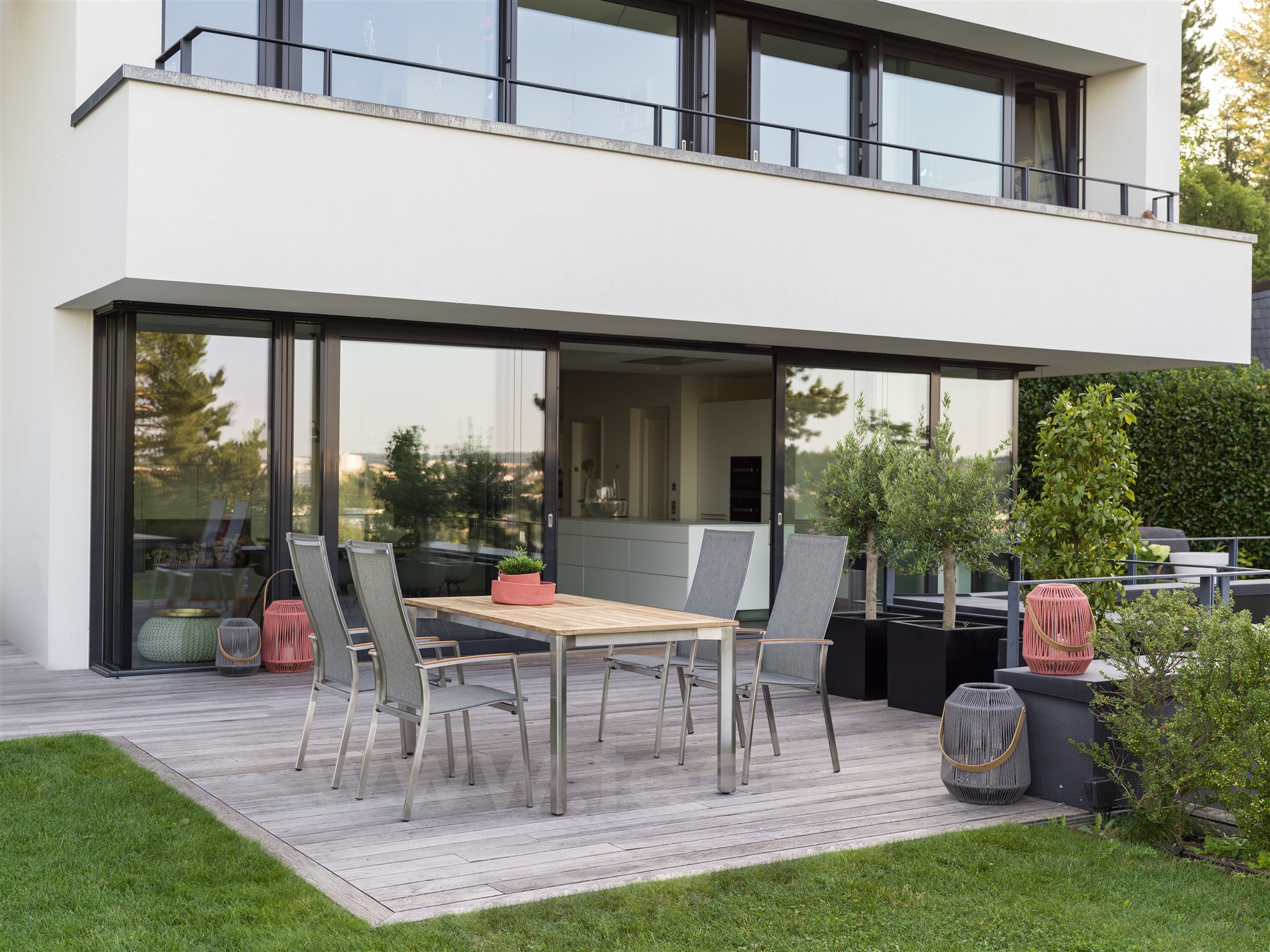 Dining table Penta, Stern, rectangular 160x90x73 cm, frame stainless steel, teak top