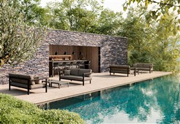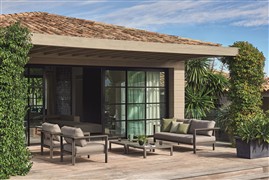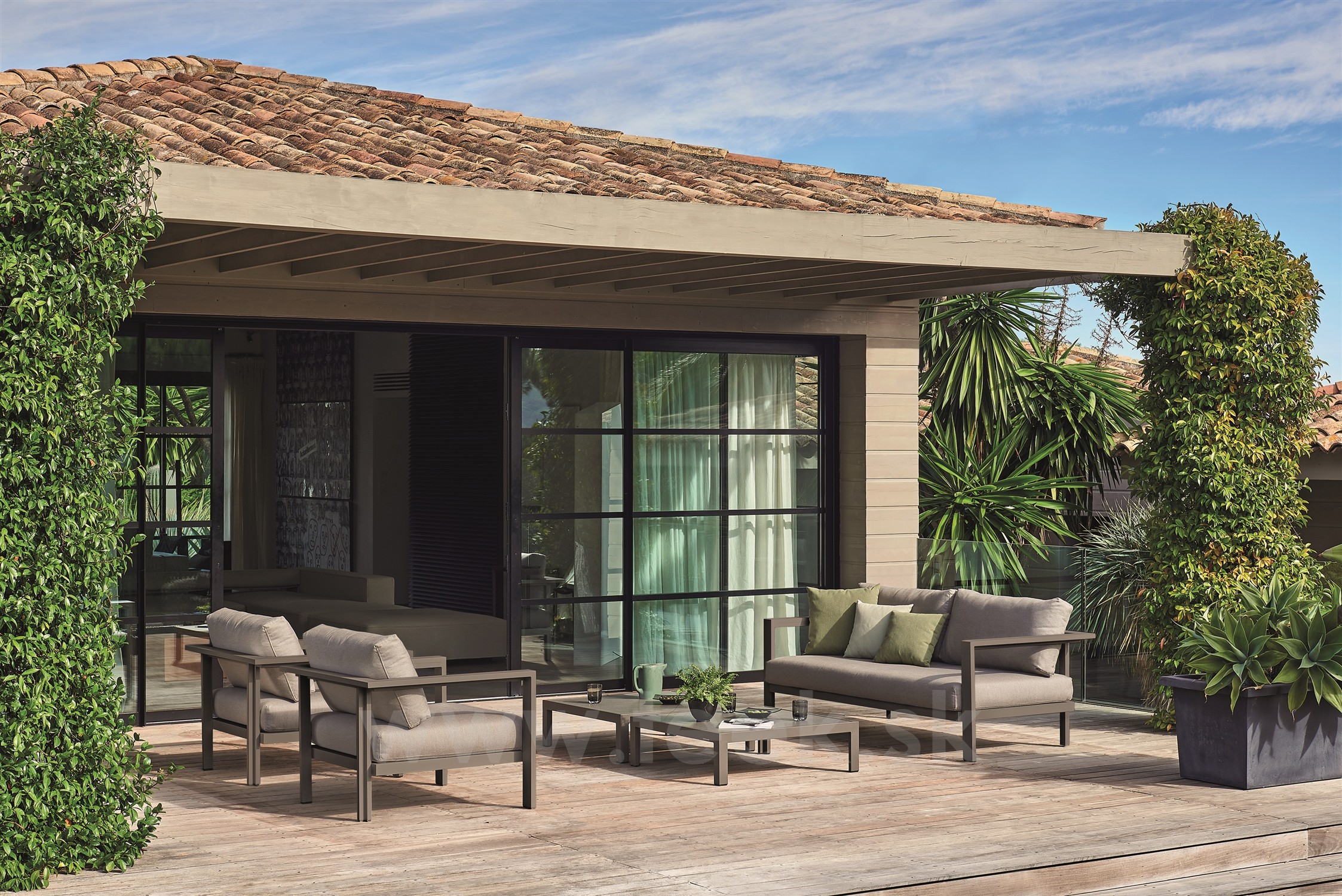 Modulová záhradná zostava s rámami z lakovaného hliníka a vonkajším čalúnením obsahuje rôzne diely, ktoré Vám umožnia vytvoriť sedaciu zostavu presne podľa Vašich predstáv a priestorových možností.