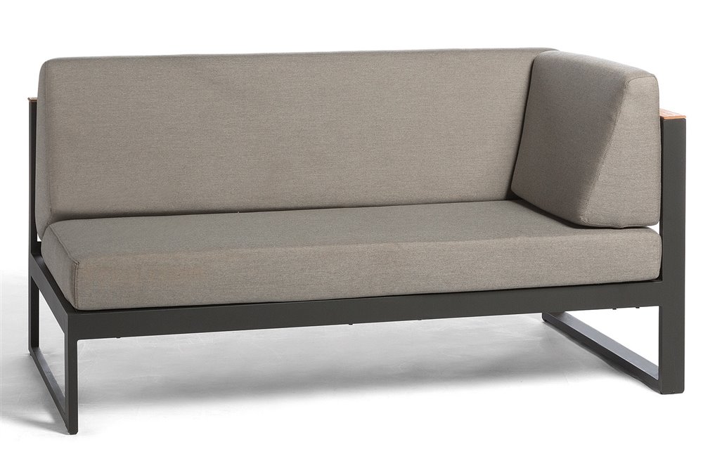 Modulový vonkajší sedací nábytok. Sedacia súprava má rámy z lakovaného hliníka s teakovanými detailmi na opierkach. Moduly vám umožnia vytvoriť sedaciu súpravu presne podľa vašich predstáv a priestorových možností.