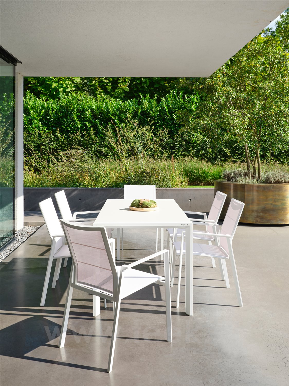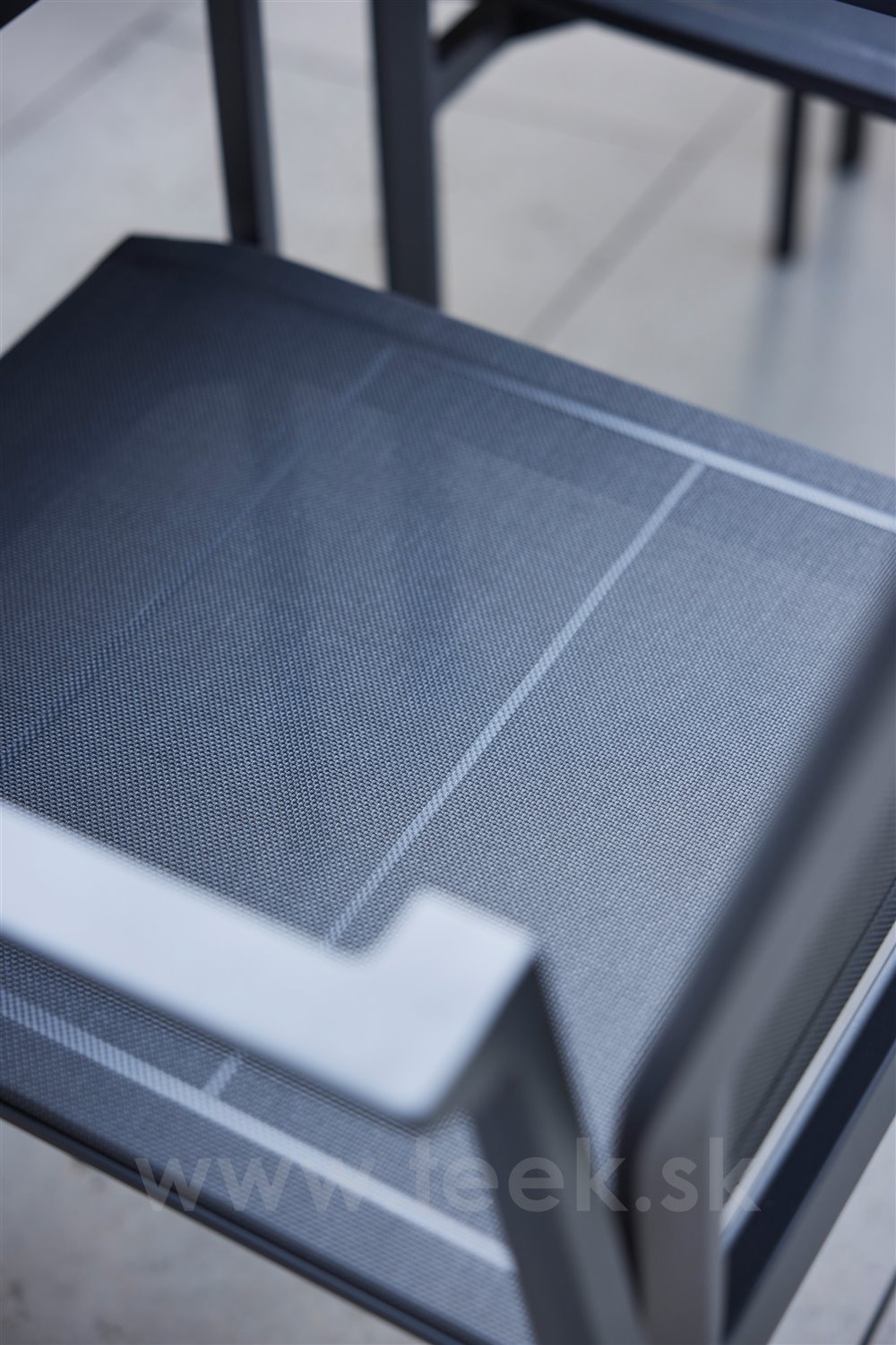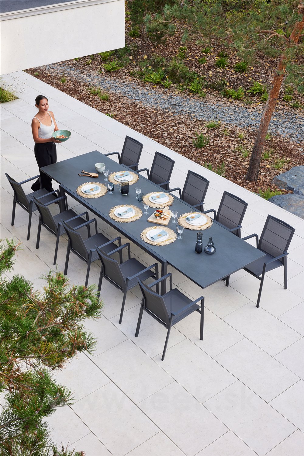 Kolekcia záhradného jedálenského nábytku z hliníka.