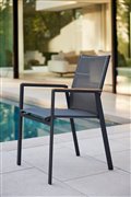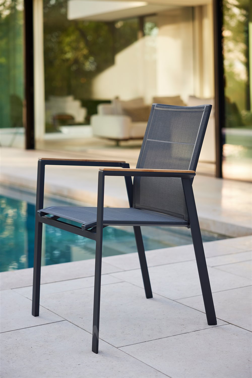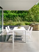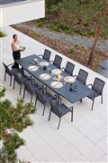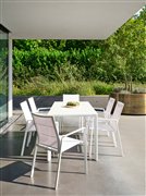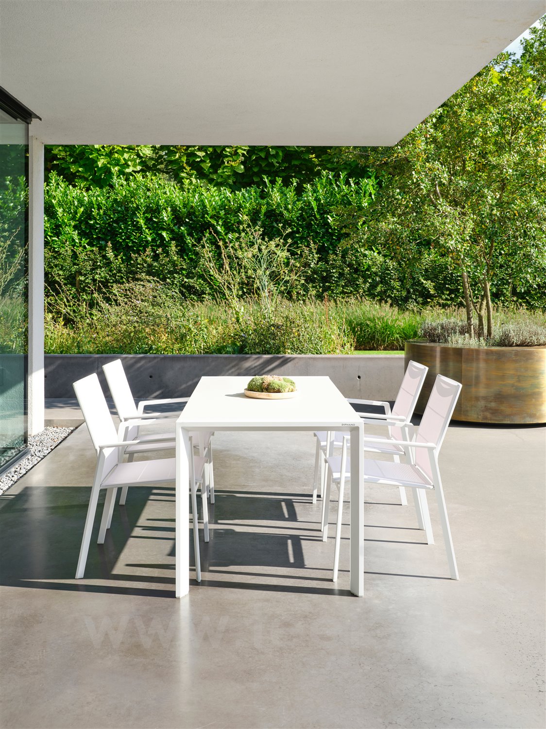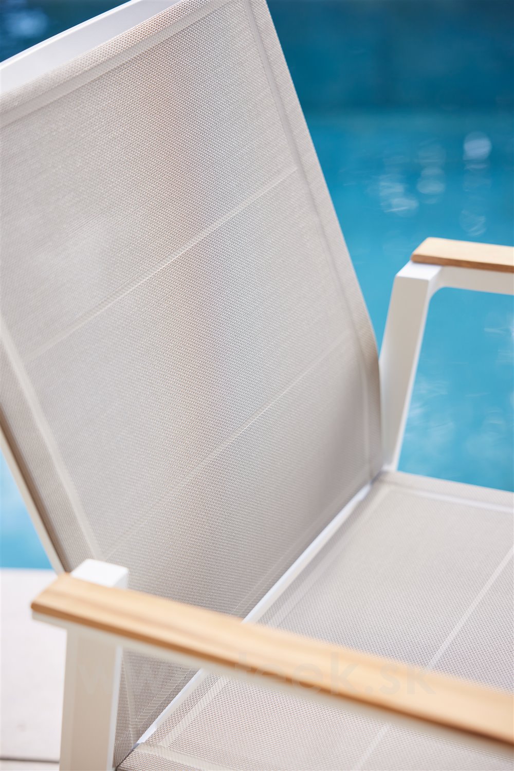 Kolekcia záhradného jedálenského nábytku z hliníka.