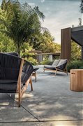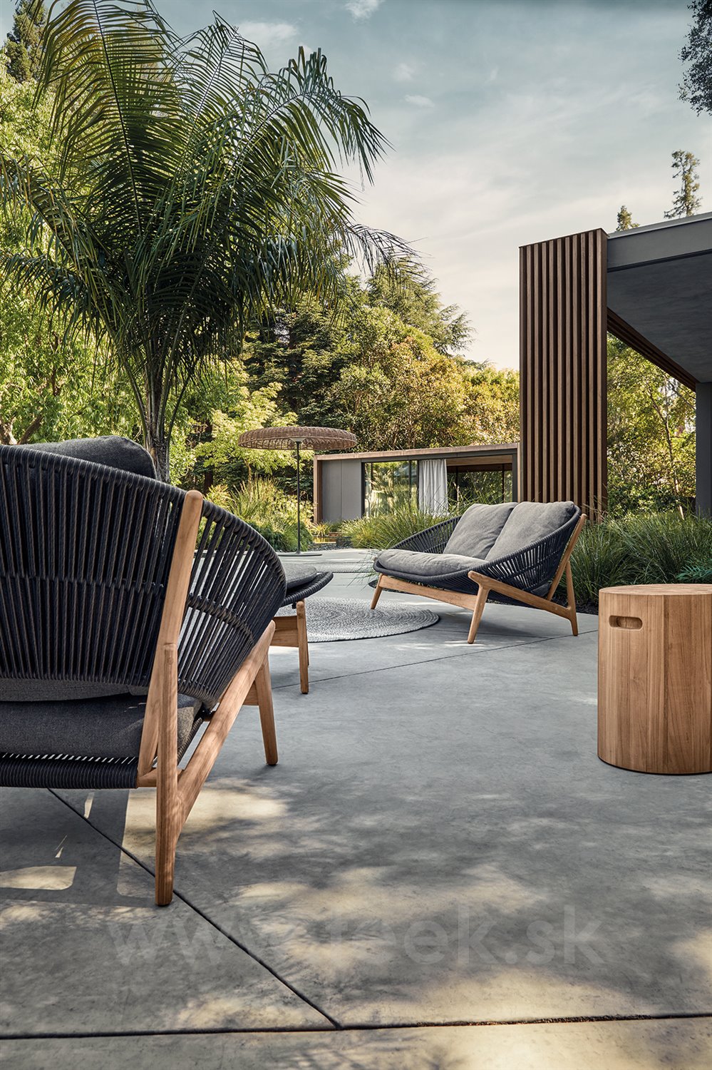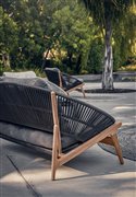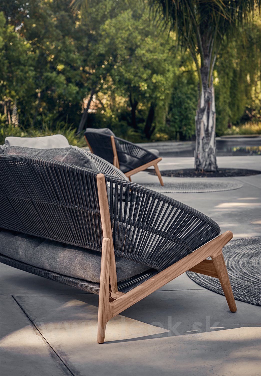 Pohovka má teakový rám v kombinácii s umelým ratanom. V cene je zahrnutý sedací vankúš a 2 vonkajšie textilné zadné vankúše. Výplň je vyrobená z rýchloschnúcej peny, takže pohovka môže byť vonku po celý rok bez toho, aby ste ju museli chrániť pred dažďom.