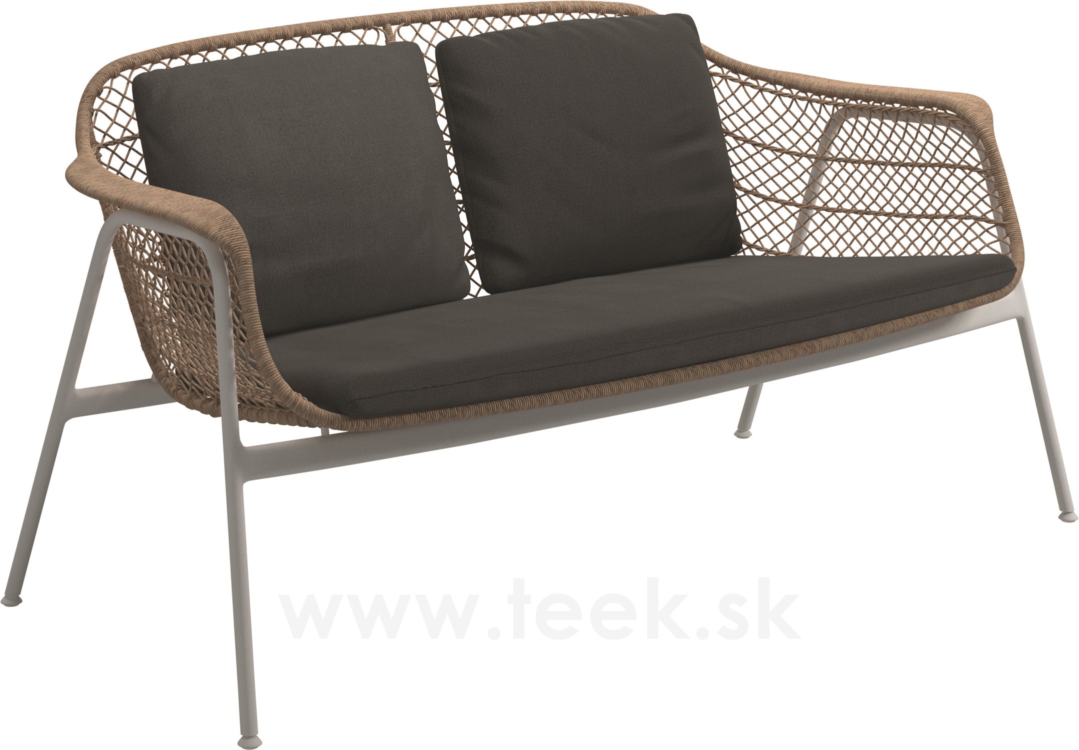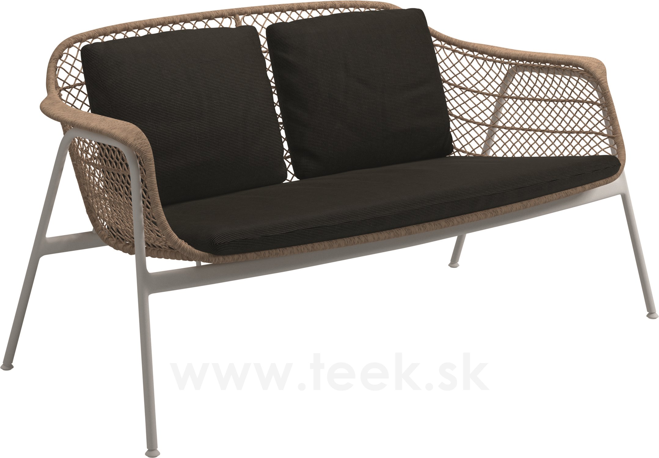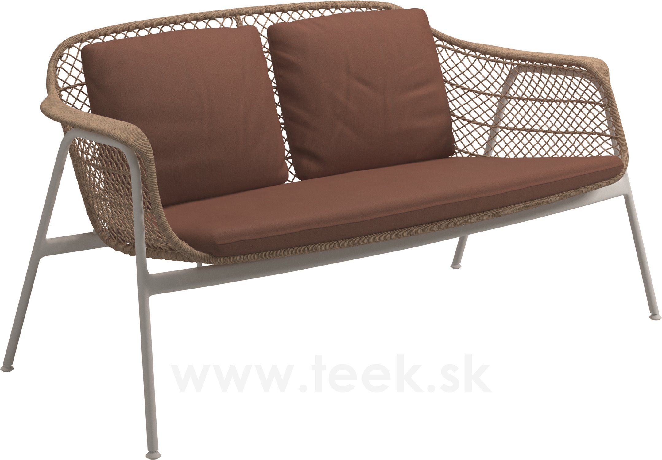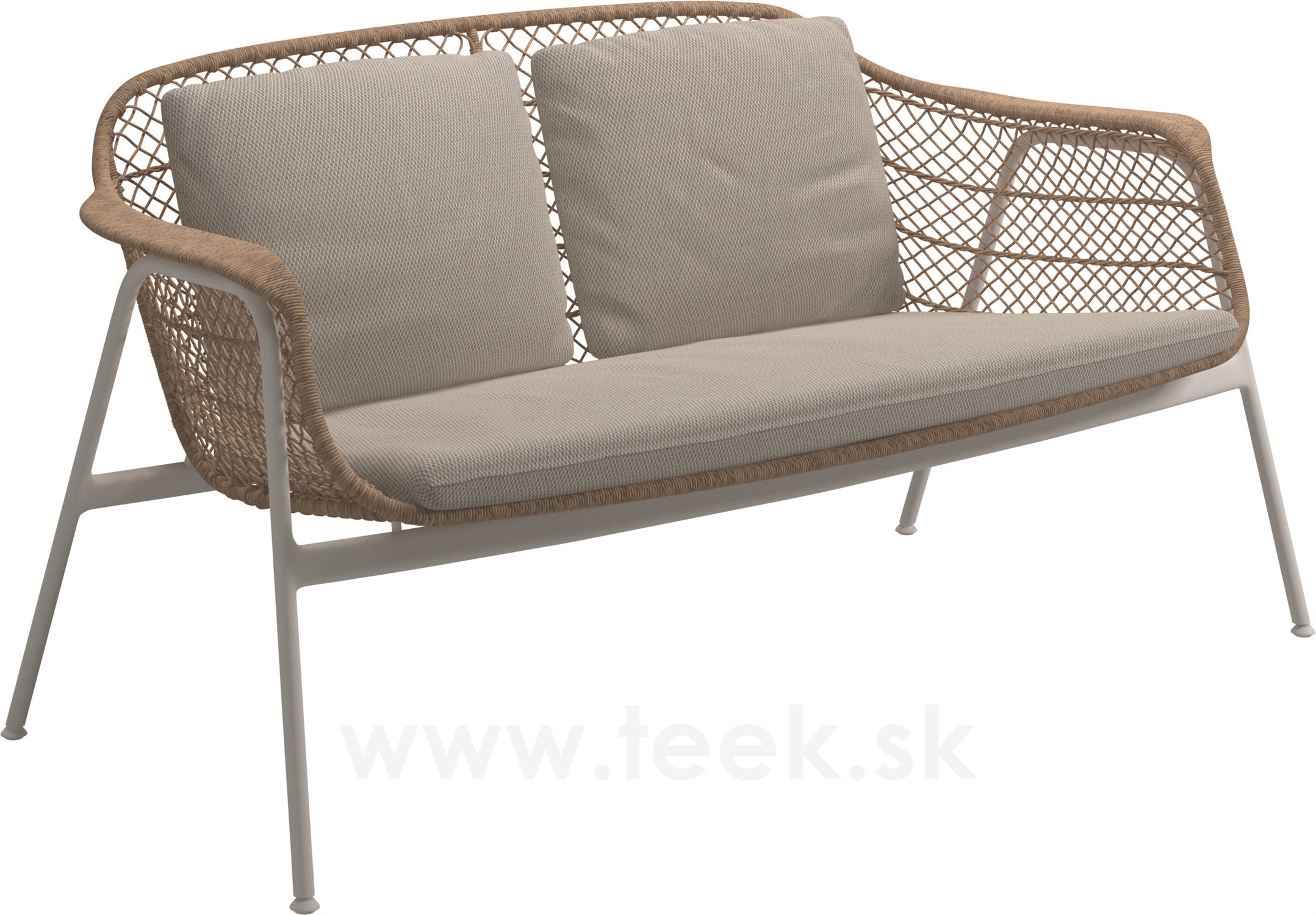Pohovka 2-místná Fresco, Gloster, 153x76,5x76,5 cm, rám hliník barva white, výplet lanko Wheat, sedák venkovní látka kat. C barva dle vzorníku