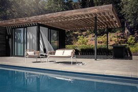• The sofa includes a seat cushion and 2 back cushions. These can be chosen from a selection of outdoor fabrics that are suitable for year-round use.