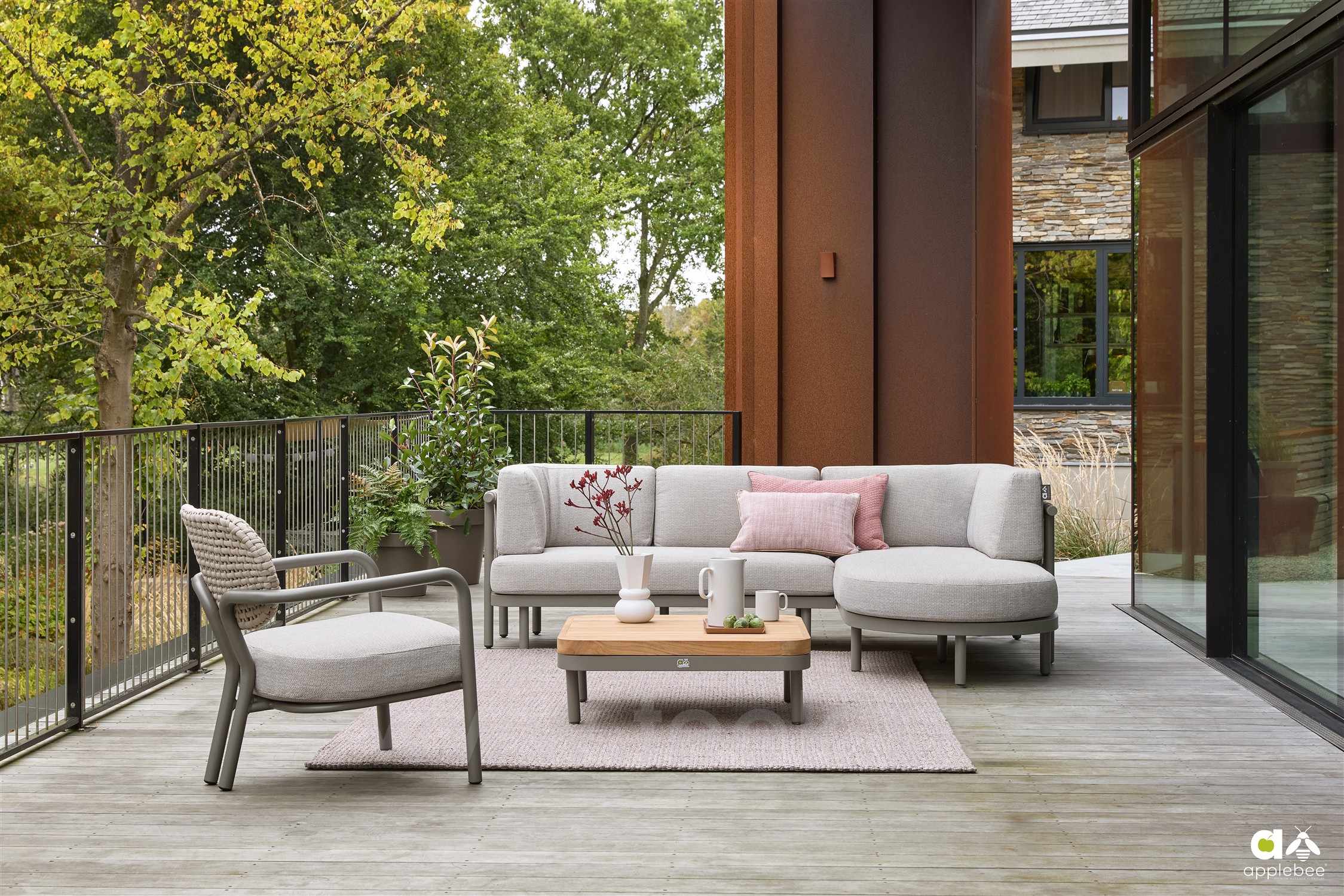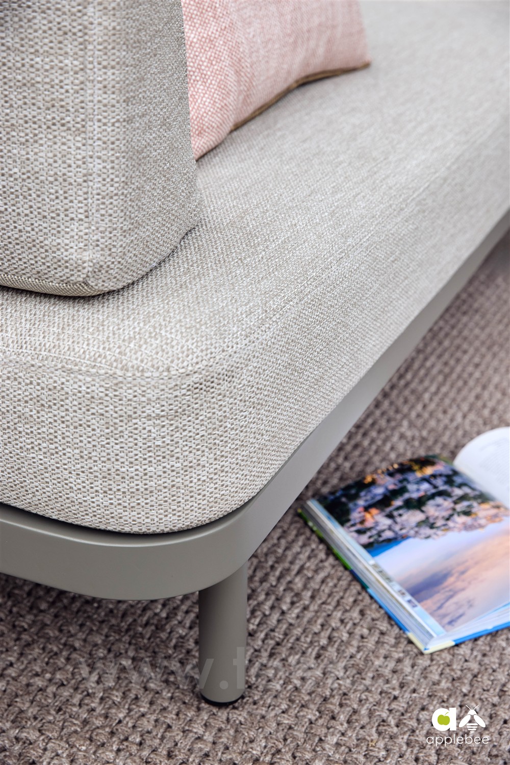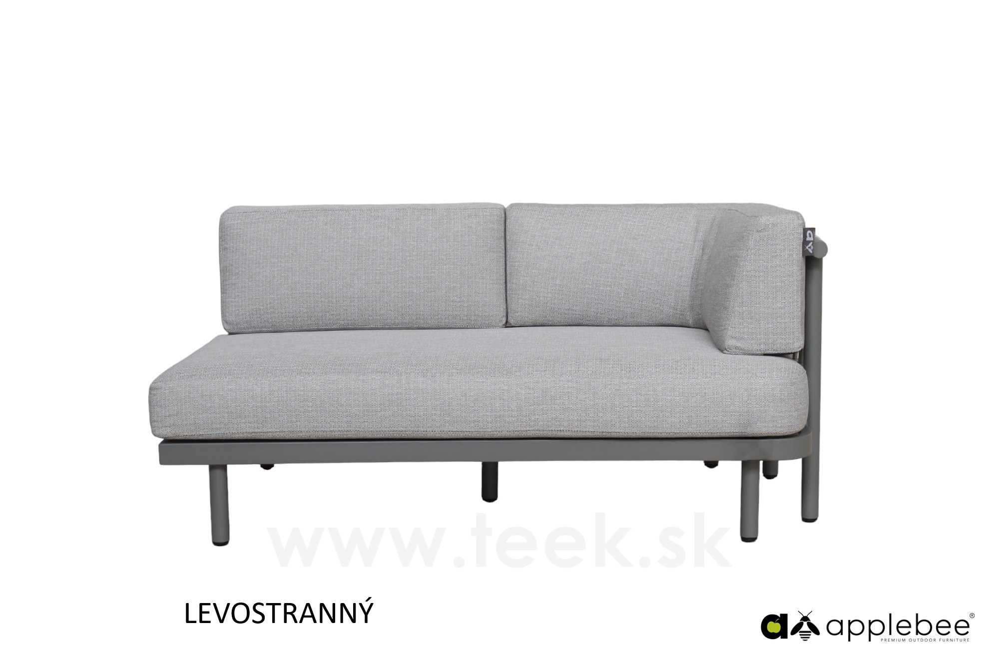 2-místný ukončovací díl levostranný Maui, Apple Bee, 155x80x68 cm, rám lakovaný hliník Taupe, výplet lanko Mid Grey, sedák venkovní látka Olefin Smoked Grey
