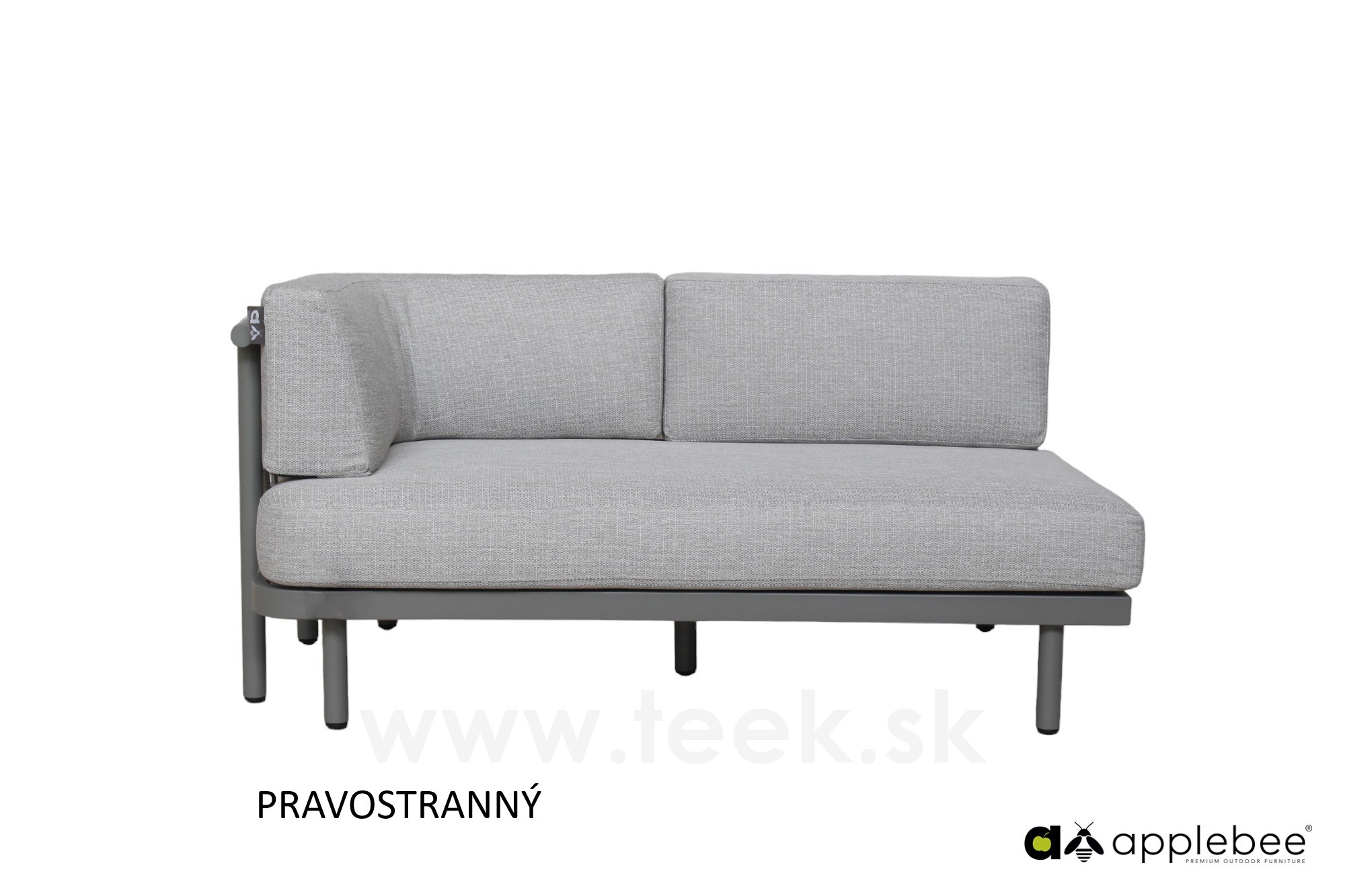 2-místný ukončovací díl pravostranný Maui, Apple Bee, 155x80x68 cm, rám lakovaný hliník Taupe, výplet lanko Mid Grey, sedák venkovní látka Olefin Smoked Grey