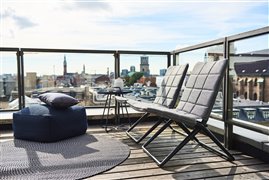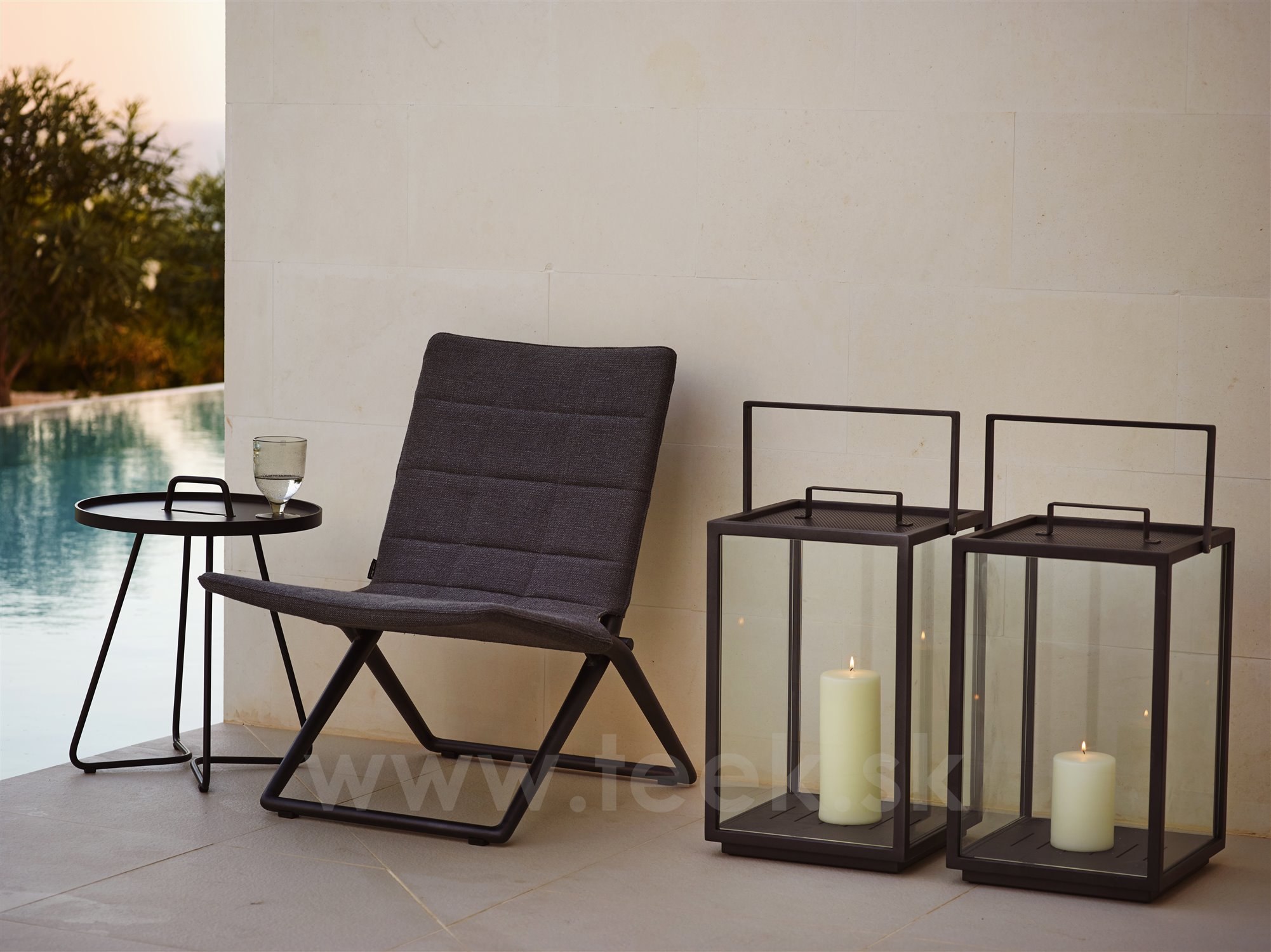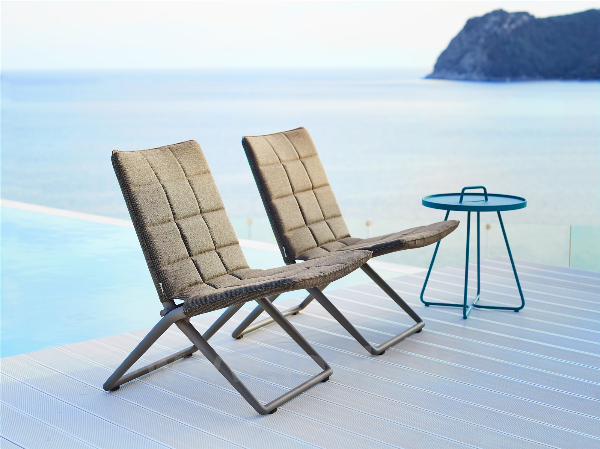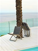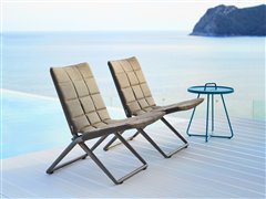 The Traveller Lounge collection by Cane-line includes a garden low folding chair. This highly flexible chair has an aluminium frame, outdoor fabric cover with quick-drying padding. The designers Foresom & Hiort-Lorenzen have designed the collection in several colours.
