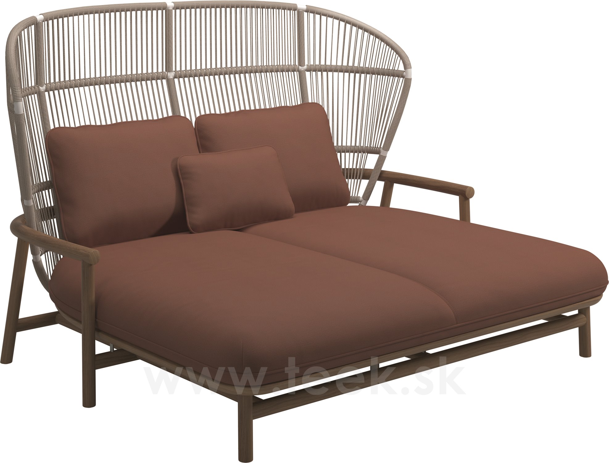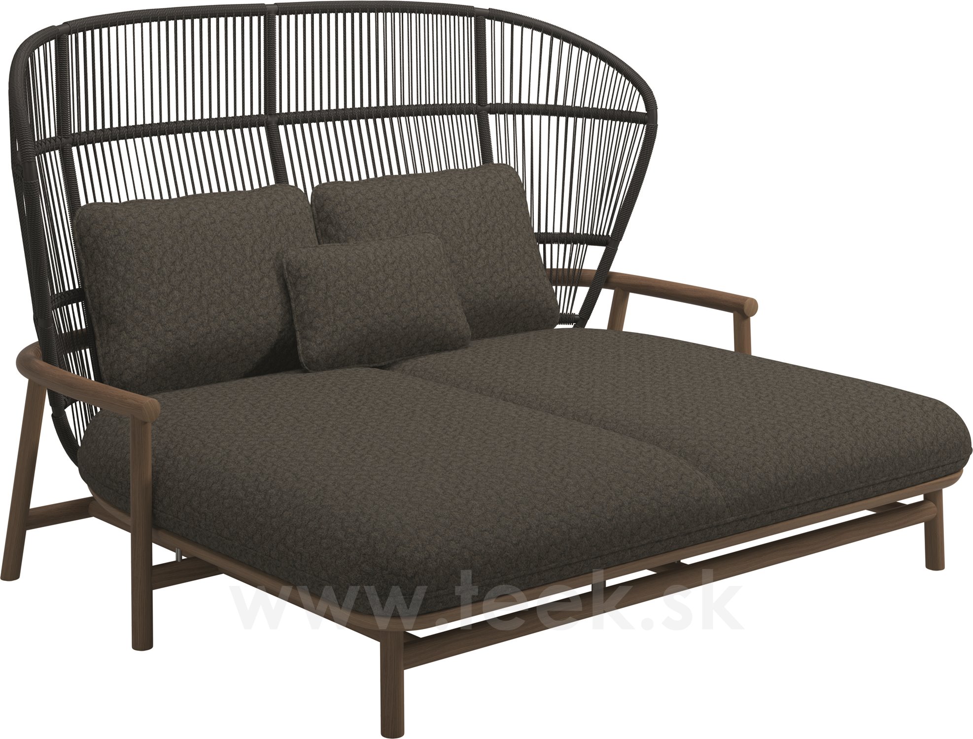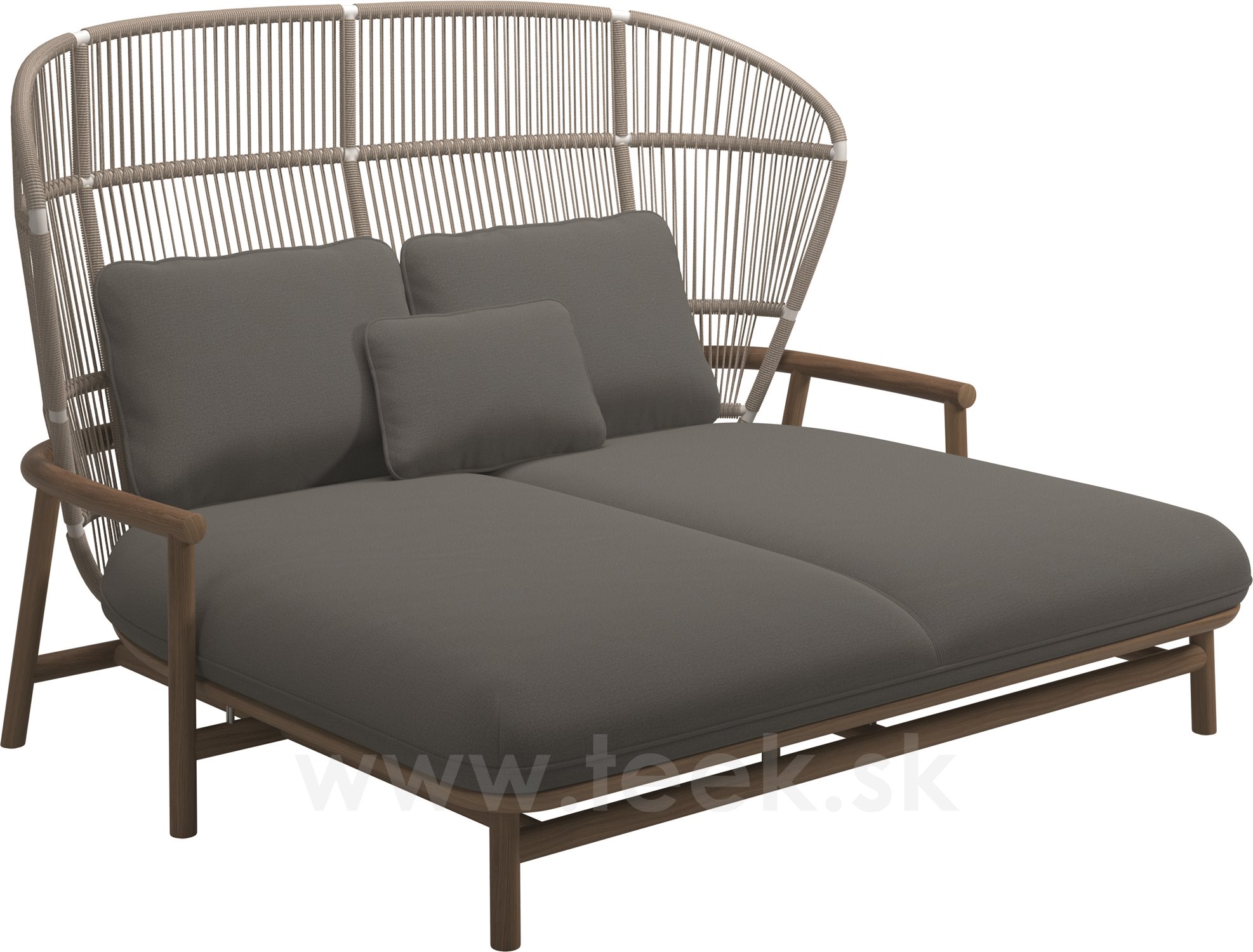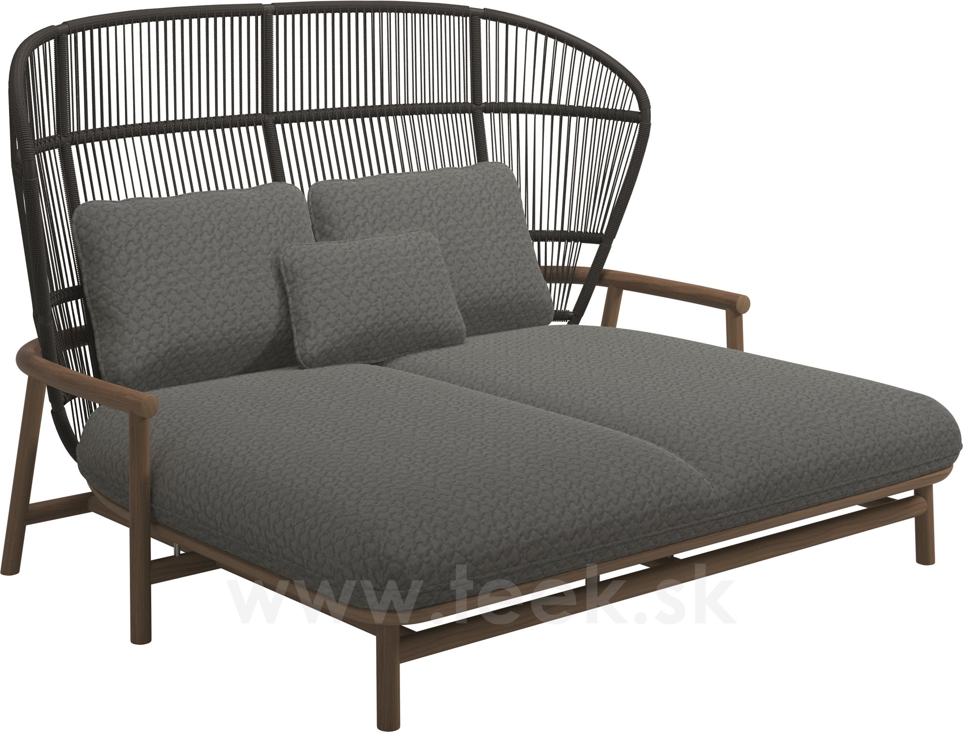 Venkovní postel s vysokou opěrkou Fern, Gloster, 175x149x116 cm, rám teak/hliník barva meteor, výplet lanko Raven, polstrování venkovní látka kat. D, barva dle vzorníku