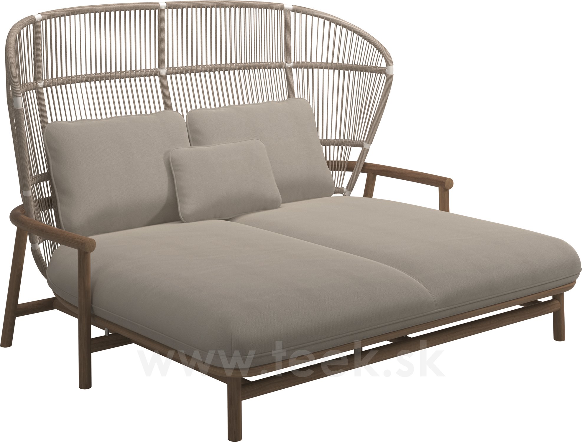 Venkovní postel s vysokou opěrkou Fern, Gloster, 175x149x116 cm, rám teak/hliník barva white, výplet lanko Dune, polstrování venkovní látka kat. C, barva dle vzorníku