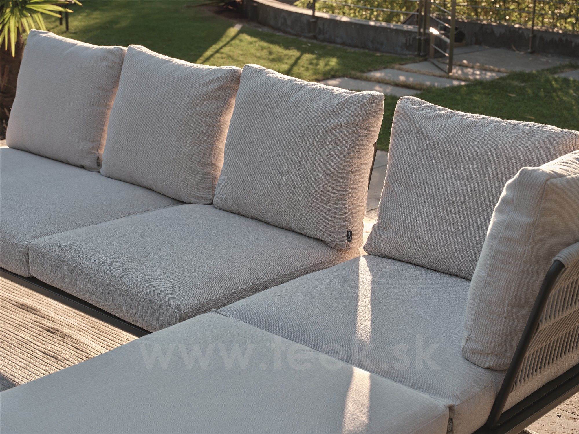 Modulový díl 3-místný polohovací Enya 206x95x85 cm, Stern, rám hliník barva antracit mat, vč. zádových opěrek s lankem Stone (3ks), sedáky a polštáře (3ks) potah Vanilla (100% akryl)