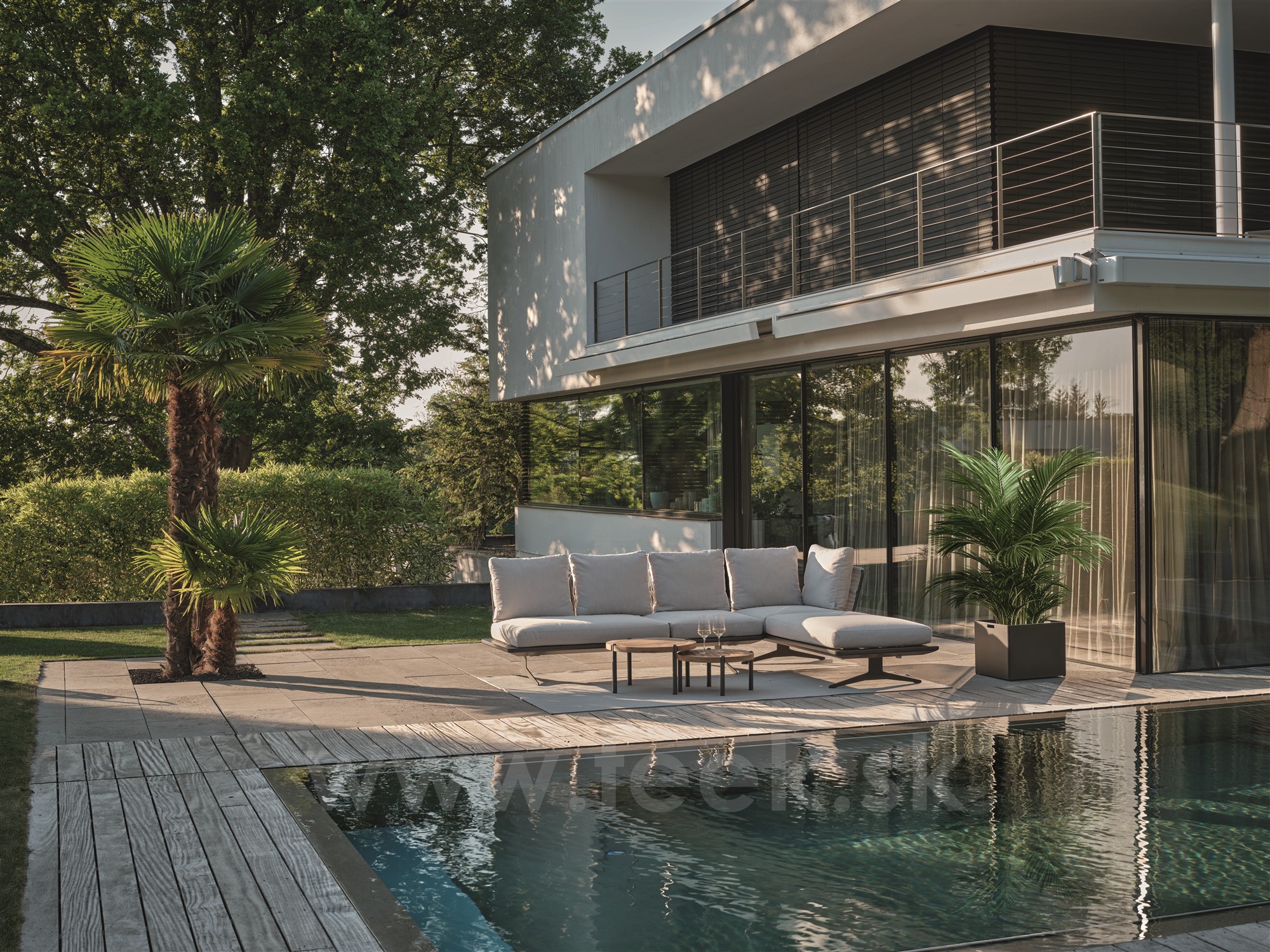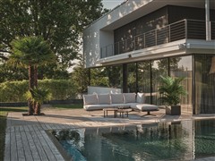 This module can be enjoyed either as a chaise for pure relaxation—featuring an adjustable backrest—or as a sofa.
