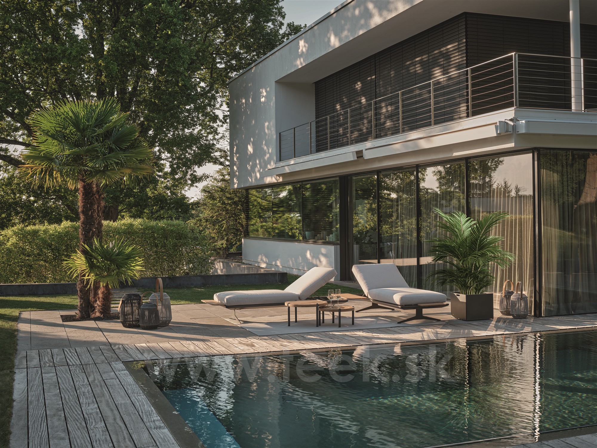 The mattress filling is standard foam and should be protected from heavy rain (if it becomes thoroughly saturated, it will dry slowly). For this reason, the piece is best placed in a covered area of the terrace or garden, or protected with a cover.