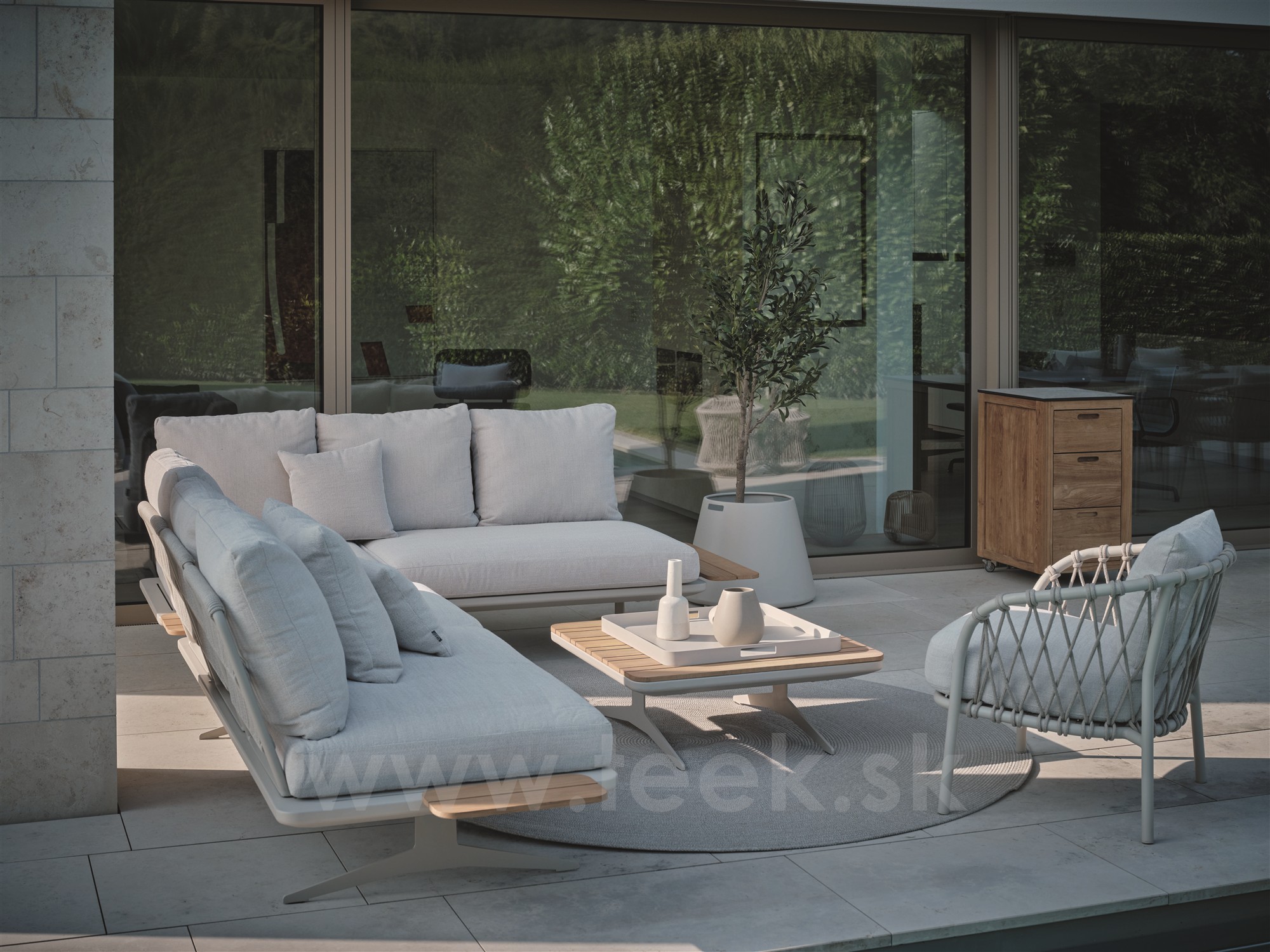 Modulový díl 3-místný polohovací Enya 206x95x85 cm, Stern, rám hliník barva Greige, vč. zádových opěrek s lankem Greige (3ks), sedáky a polštáře (3ks) potah Pearl Grey (100% akryl)
