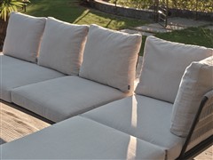 The module features an exceptionally comfortable, high-profile mattress upholstered in premium branded outdoor acrylic fabric. The cover is zip-fastened and washable.