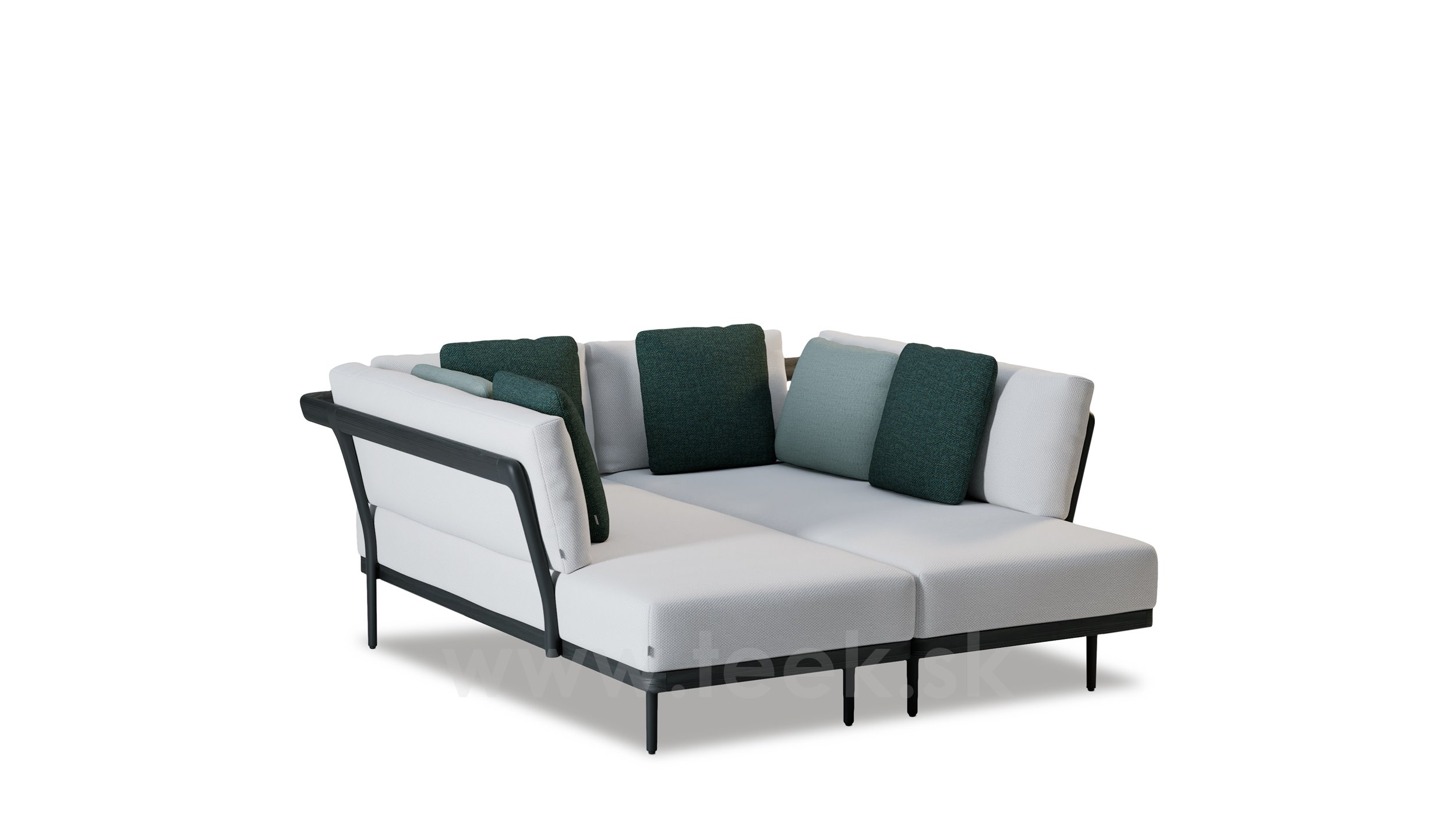 Flows daybed, Manutti, 166x176x73 cm, frame aluminum lava dark grey and teak scuro - black stained teak, frame without cushions