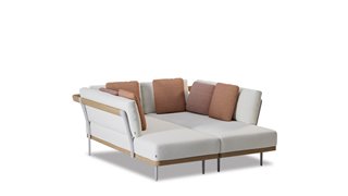 Flows daybed, Manutti, 166x176x73 cm, frame aluminum flint beige-grey and teak, frame without cushions