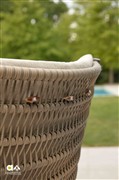 Outdoor dining chair with a frame made of painted steel in a color according to the color chart, cord weave, and seats made of outdoor fabric.
