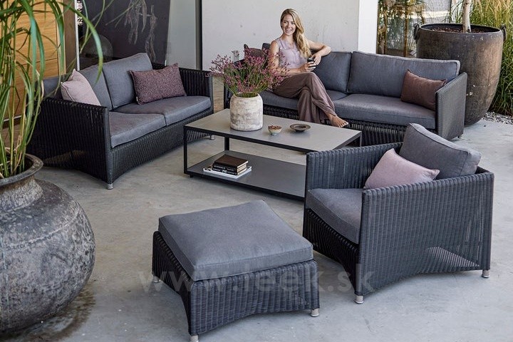 2-seater sofa Diamond, Cane-line, 150x88x63 cm, frame aluminum, weave synthetic rattan color graphite, cushions outdoor fabric Natté grey