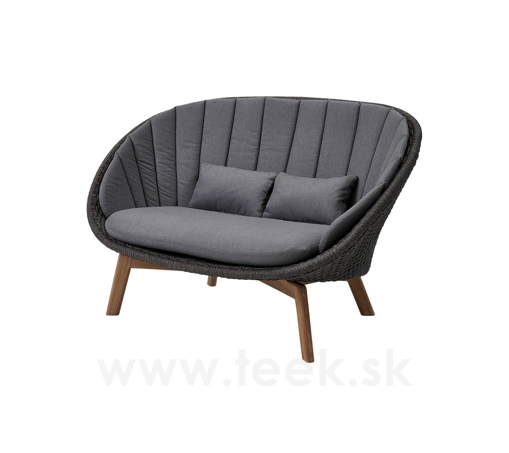 2-místná pohovka Peacock, Cane-line, 151x96x94 cm, nohy teak, rám hliník, výplet lanko Soft Rope dark grey, bez polstrů