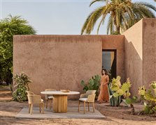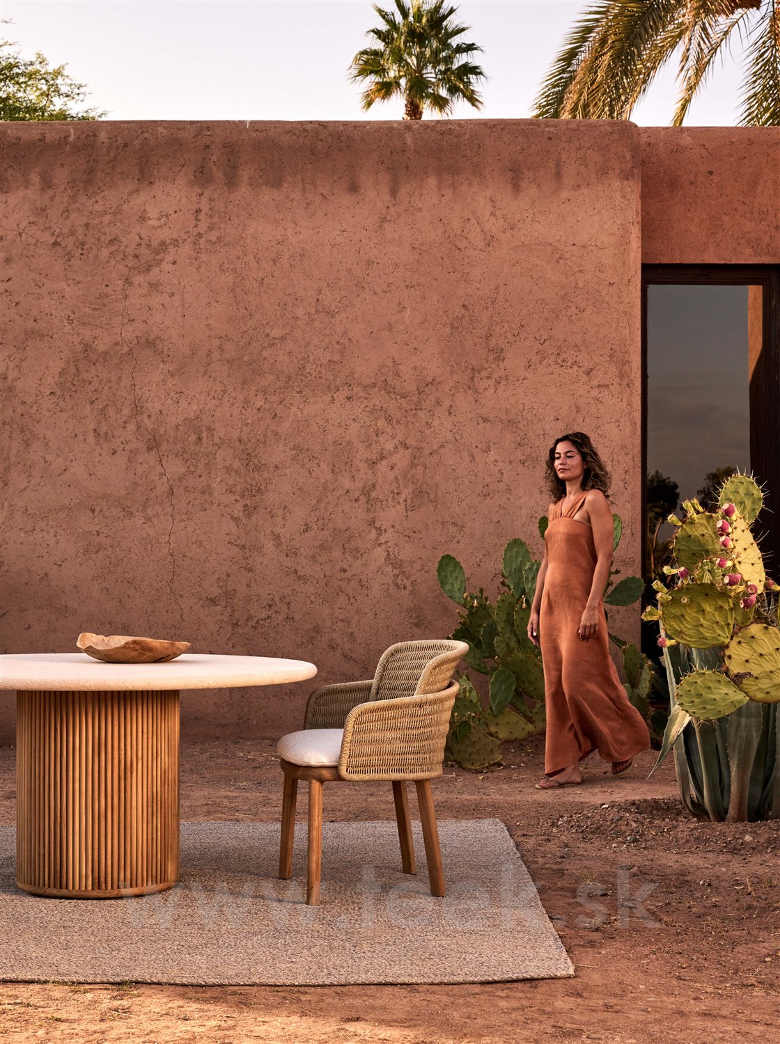 Dining table Otto, Tribu, round 148x75 cm, teak frame, top ceramic sabbia decor