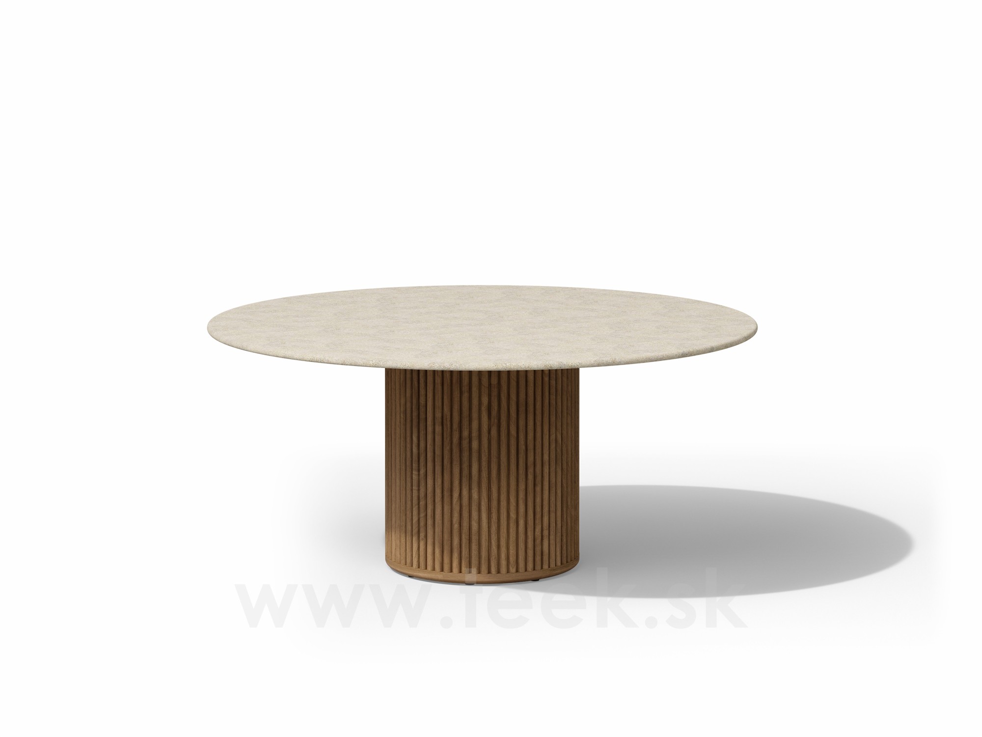 Dining table Otto, Tribu, round 148x75 cm, frame teak, top natural stone travertine