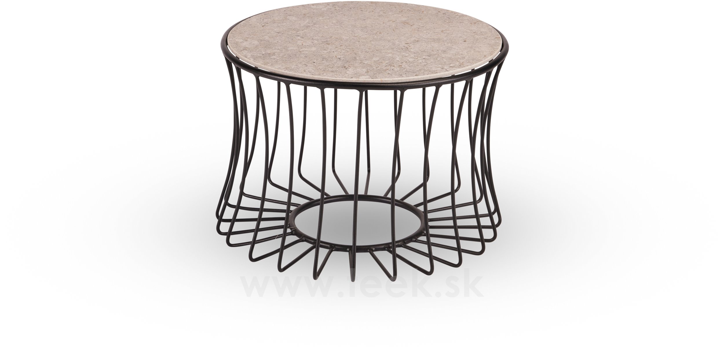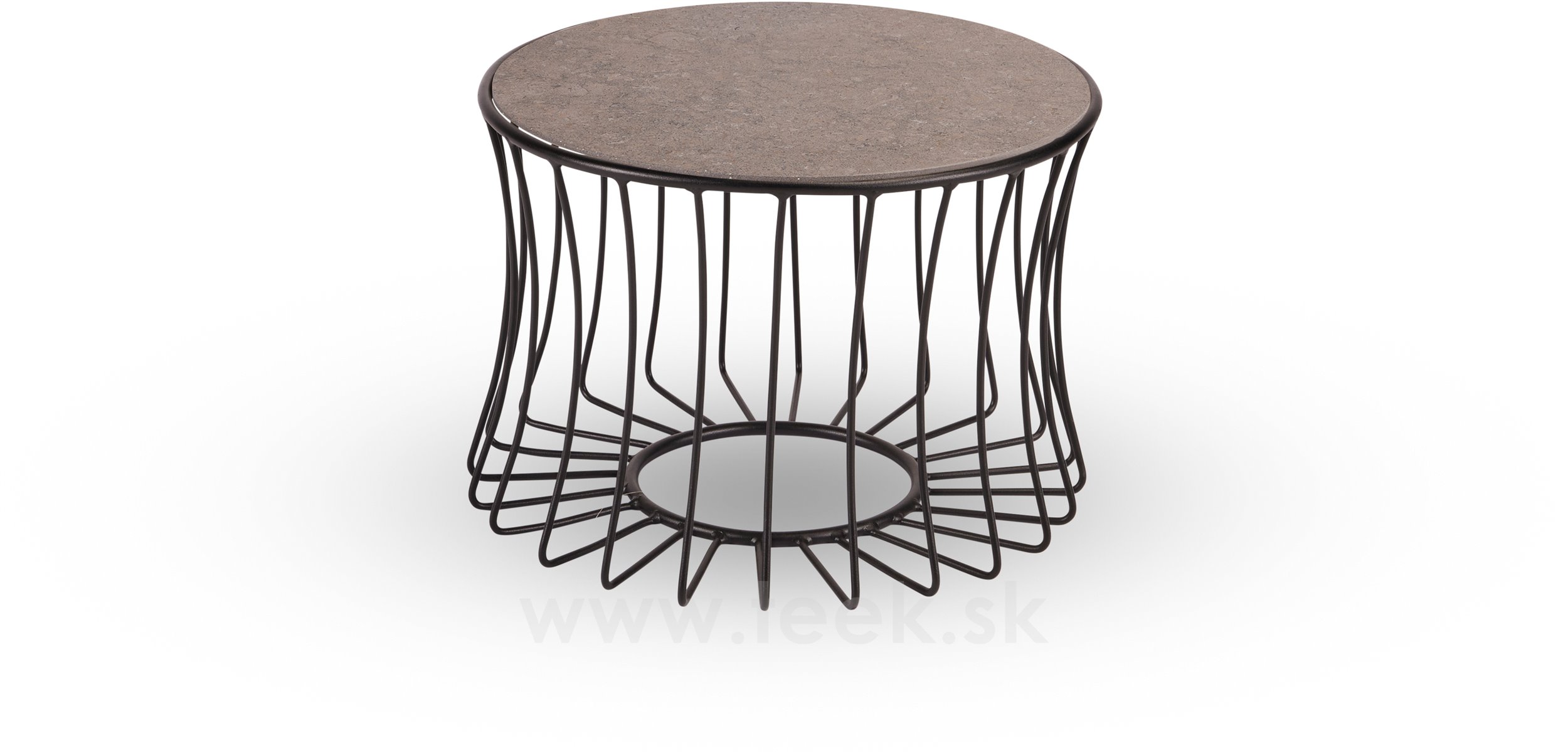 Side table Oxo, Stern, round 51x37 cm, tabletop diameter 48 cm, frame lacquered aluminum black (black matt), tabletop ceramic decor Stone grey
