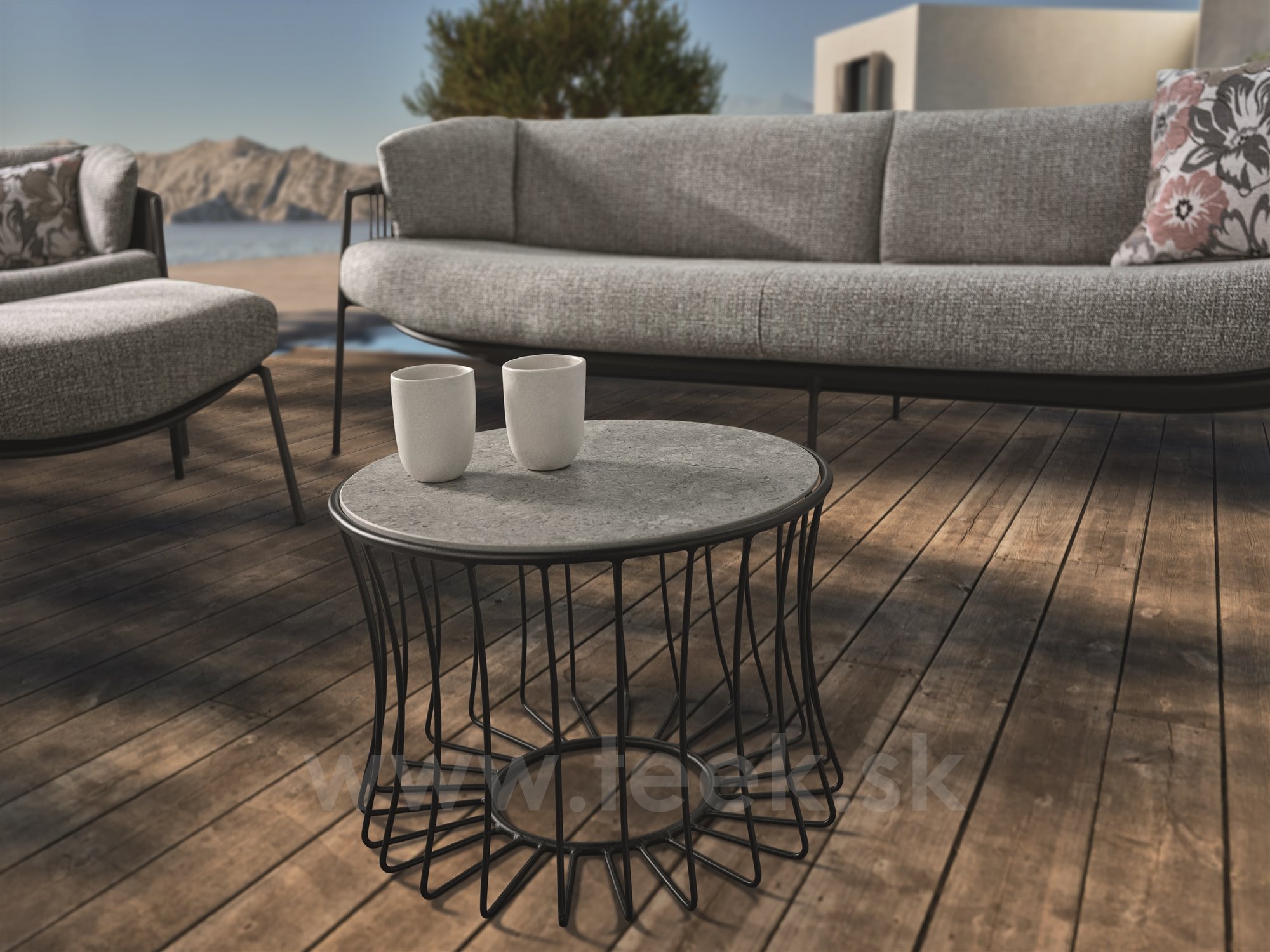Oxo side table, Stern, round 51x37 cm, tabletop diameter 48 cm, frame lacquered aluminium sand matt, tabletop ceramic decor Stone grey