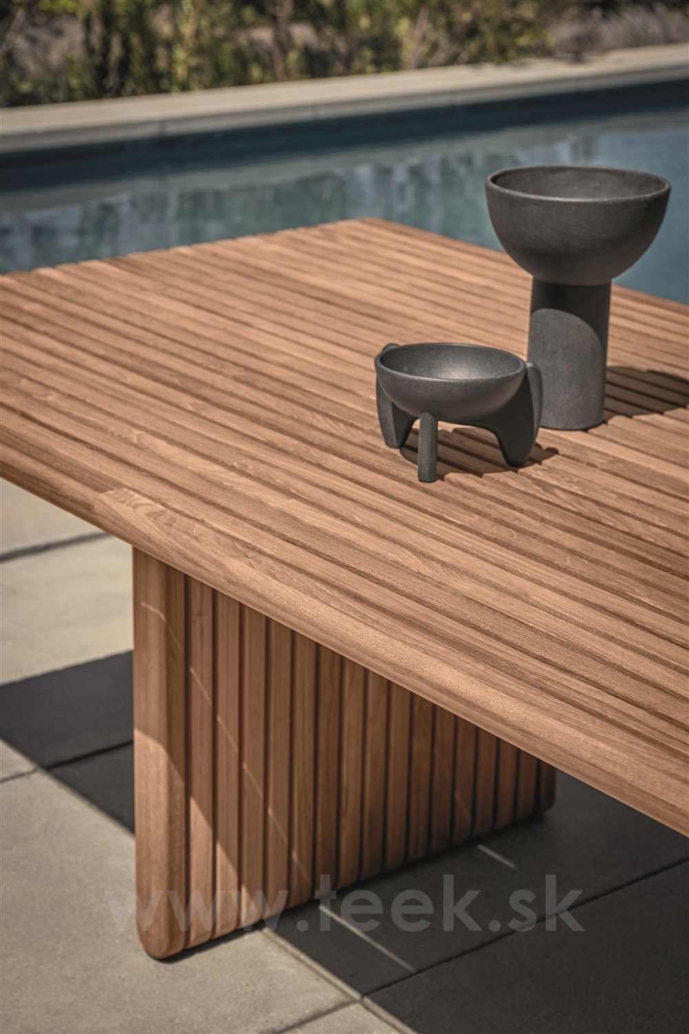Straight wooden surface, long and wide, but at the same time almost transparent. Elegant, uniform and made of solid plantation teak. The linear style of the Deck tables defines Gloster's design aesthetic. Inspired by the teak decks on the fastest and best sailing ships of yesteryear, the simple yet visually striking design evokes an uncompromising atmosphere of quality and craftsmanship.