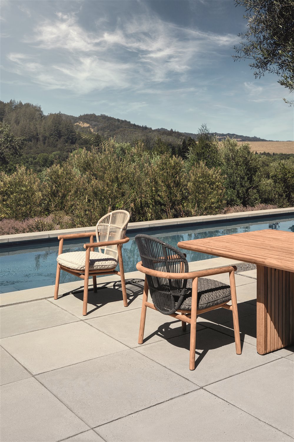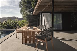We recommend combining the dining tables with the Deck Lounge modular seating set from the same collection.