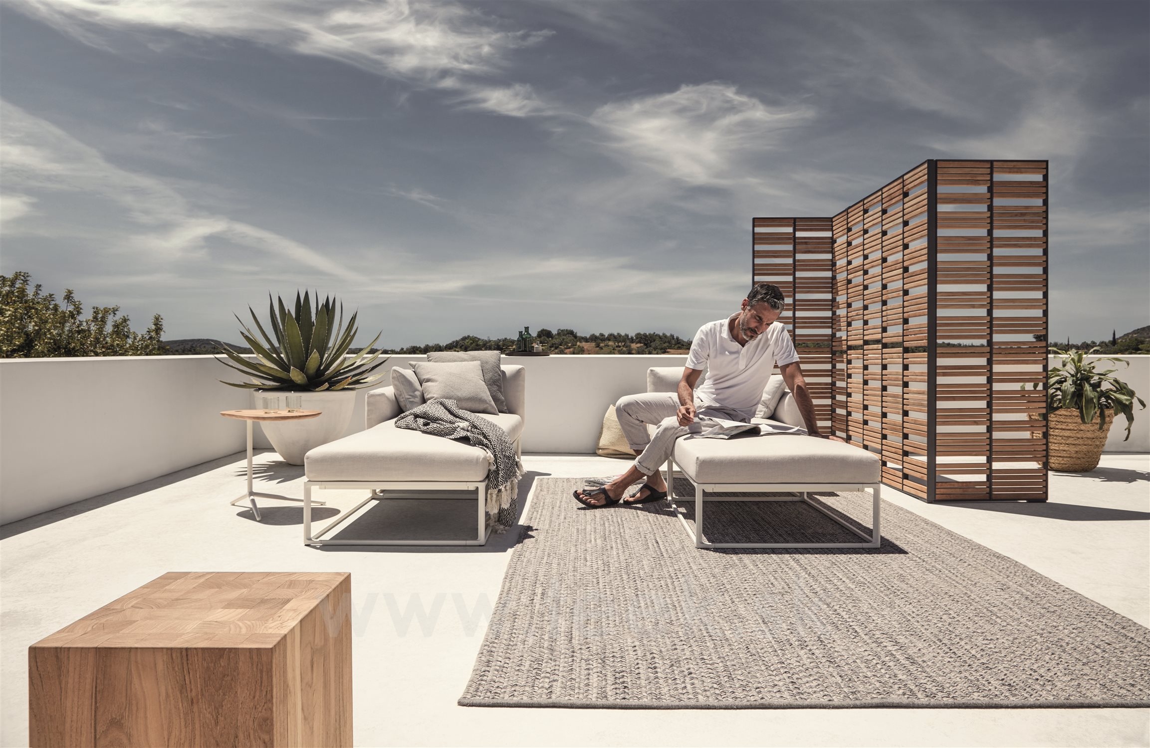 Lightweight comfortable all-weather modular design seating in all weather quality. One of Gloster's best-selling modular sets. Ideal solution for smaller patios due to the smaller depth of the seating pieces. We always recommend to complement with supporting decorative posters.