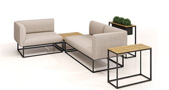 The modular seating set can be complemented with Maya Cove sofas with side panels from the same collection.