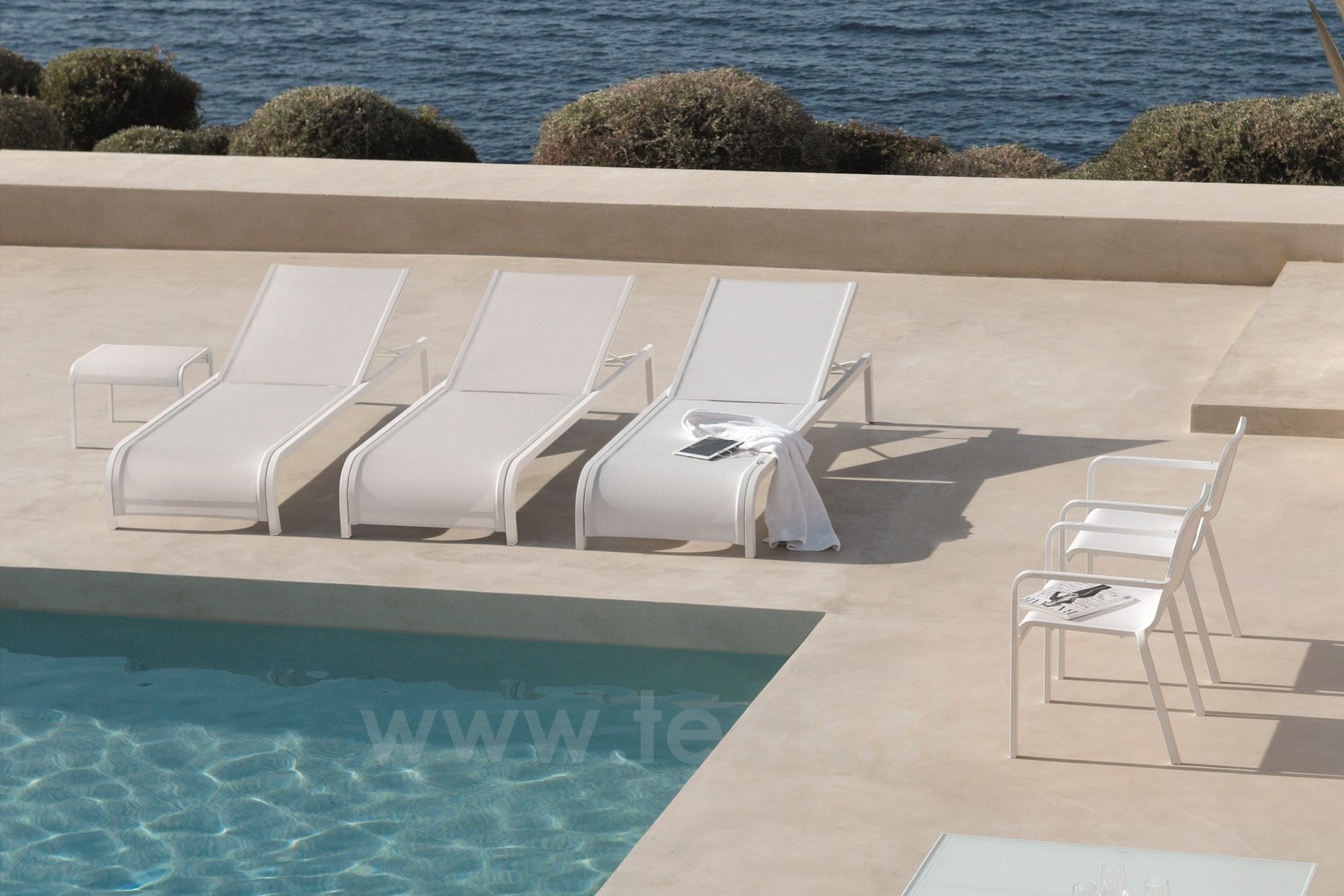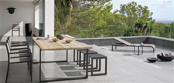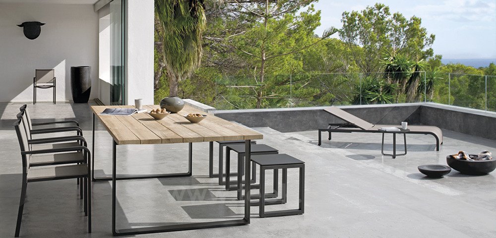 Zahradní lehátko lze kombinovat se zahradním nábytkem
