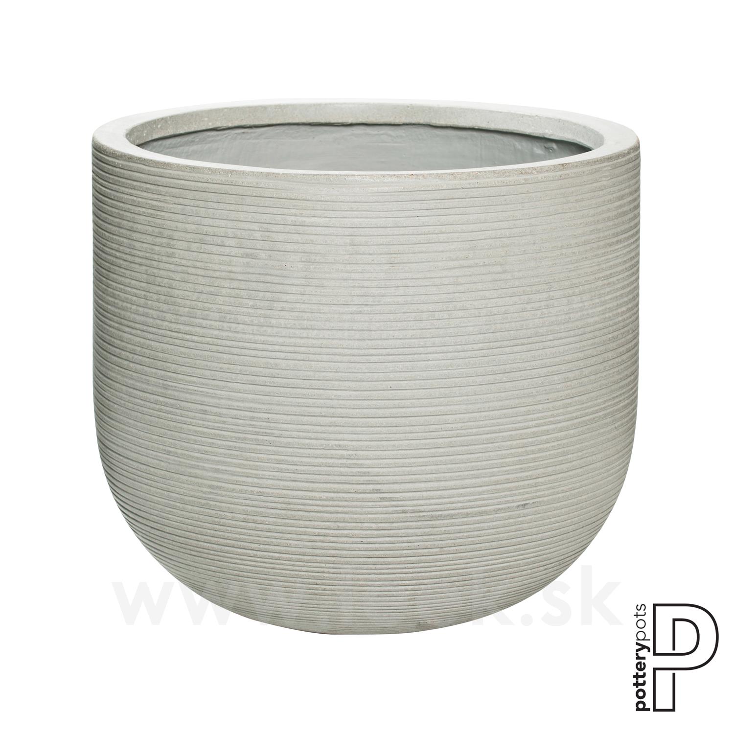 Outdoor planter round Cody L, Light Grey, collection Ridged, material Ficonstone, diameter 42 cm x h 37 cm, volume approx. 45 l