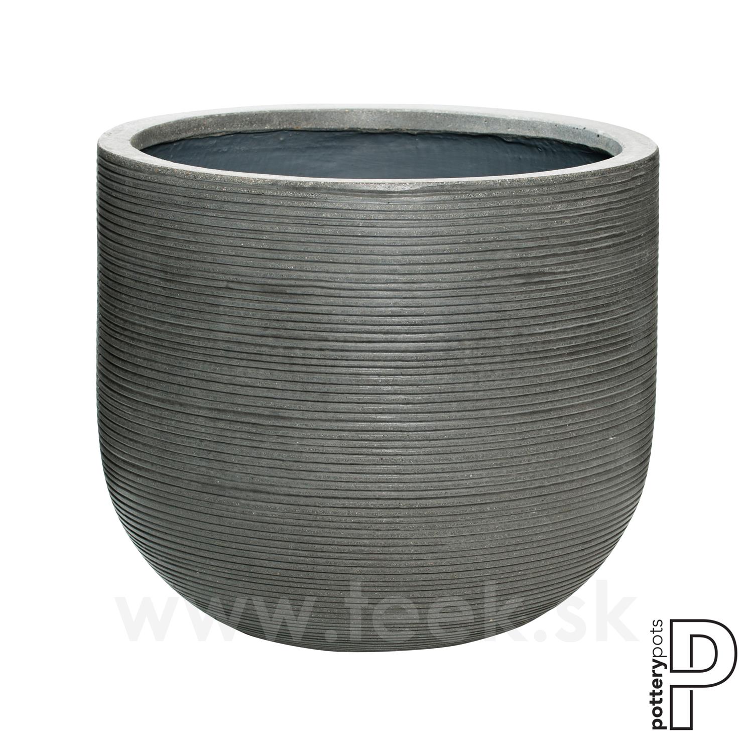 Outdoor planter round Cody L, Dark Grey, collection Ridged, material Ficonstone, diameter 42 cm x h 37 cm, volume approx. 45 l